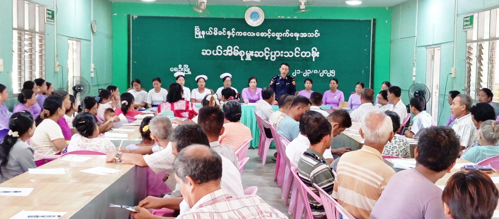 ဆက်လက်ပြီး မြို့နယ်မီးသတ်ဦးစီးဌာန ဦးစီးအရာရှိ ဦးဆာမူအဲယ်က သဘာ၀ဘေးအန္တရာယ်ကြိုတင်ကာကွယ်ရေး နည်းလမ်းများ၊ မြို့နယ်ပြည်သူ့ကျန်းမာရေးဦးစီးဌာန သူနာပြုဆရာမကြီး ဒေါ်ဌေးဌေးသန်းနှင့် ၀န်ထမ်းများက သွေးတိုး၊ ဆီးချို၊ နှလုံးရောဂါ ဖြစ်ပွားရခြင်းနှင့် နေထိုင်စားသောက်မှုပုံစံများ၊ မွေးကင်းစမှ တစ်နှစ်ခွဲအထိ လစဉ်ပုံမှန်ကာကွယ် ဆေးများ ထိုးနှံပေးနေမှု၊ အသက် ၉ နှစ်ပြည့်ပြီးသော ကျောင်းပြင်ပနှင့် ကျောင်းနေအရွယ်ကလေးများအား သားအိမ်ခေါင်းကင်ဆာ ကာကွယ်ဆေး ထိုးနှံပေးနေမှု၊ ပြည်သူ့ကျန်းမာရေးဦးစီးဌာနက ပြည်သူ့၀န်ဆောင်မှုလုပ်ငန်းများ ဆောင်ရွက်ပေးနေမှုတို့ကို အသီးသီးရှင်းလင်းပြောကြားခဲ့ကြသည်။