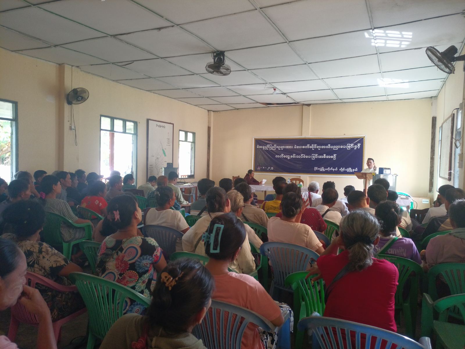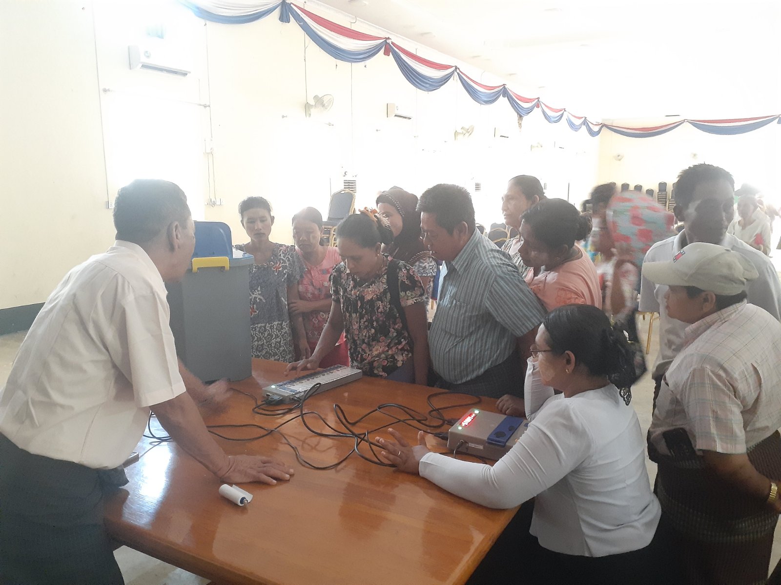 ကရင်ပြည်နယ် ဘားအံခရိုင် လှိုင်းဘွဲမြို့နယ်တွင် ပါတီစုံဒီမိုကရေစီ အထွေထွေရွေးကောက်ပွဲနှင့် ပတ်သက်ပြီး မဲဆန္ဒရှင်ပြည်သူများအနေဖြင့် သိသင့်သိထိုက်သော အချက်အလက်များနှင့် ရွေးကောက်ပွဲတွင် အသုံးပြုမည့် မြန်မာအီလက်ထရောနစ်မဲပေးစက်ကို လက်တွေ့အသုံးပြု နိုင်ရန်အတွက် မဲပေးစက်ဆိုင်ရာ အသိပညာပေး ဟောပြောခြင်း၊ လက်တွေ့စမ်းသပ်ခြင်းတို့ကို ယနေ့နံနက်၁၀နာရီက ဆောင်ရွက်သည်။