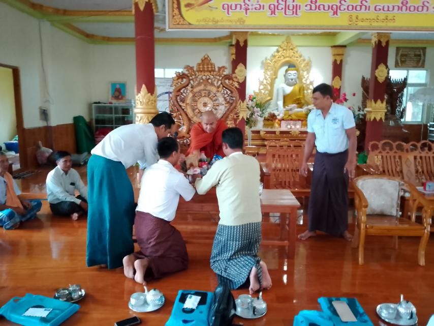 ဦးစွာ မြို့ဦးဘုန်းတော်ကြီး ကျောင်းထိုင်ဆရာတော်က သီလပေးခြင်းနှင့် လှူဒါန်းမှုအစုစုတို့အား အမျှပေးဝေခဲ့သည်။ ထို့နောက် မြို့အုပ်ချုပ်ရေးမှူးနှင့် ဌာနဆိုင်ရာဝန်ထမ်းများက ဆရာတော်အား ဝါဆိုသင်္ကန်း၊ ဆွမ်းနှင့် လှူဖွယ်အစုစုတို့အား ဆက်ကပ်လှူဒါန်းခဲ့ကြောင်းသိရ သည်။