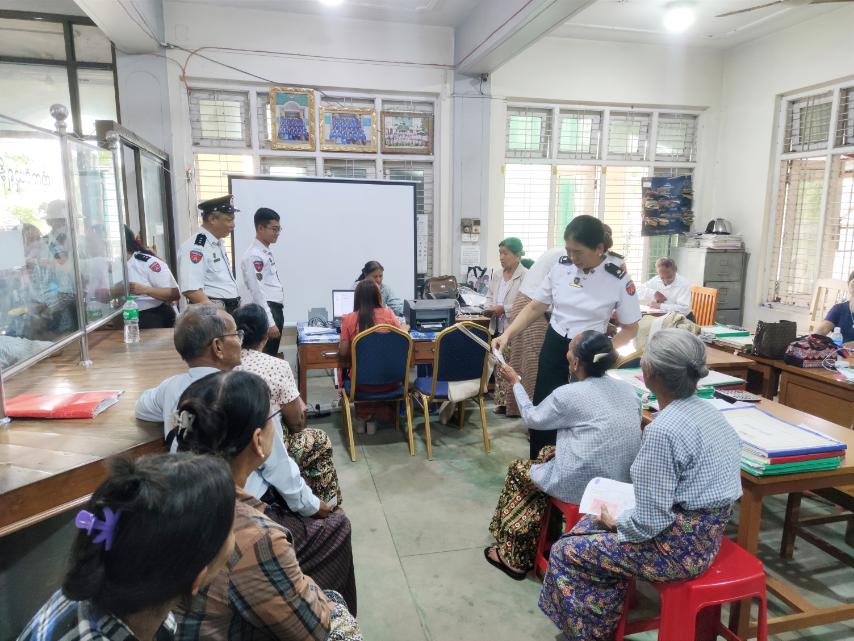ထိုသို့ ဆောင်ရွက်ရာတွင် မြို့နယ်ဦးစီးမှူးနှင့်ဝန်ထမ်းများသည် မြန်မာ့စီးပွားရေးဘဏ်တွင် ပင်စင်လာရောက်ထုတ်ယူလျက်ရှိသည့် နိုင်ငံ့ဝန်ထမ်း (ငြိမ်း) ပင်စင်စားများအဆင်ပြေ လွယ်ကူစေရန် အထူးအစီစဥ် တစ်ရပ်အနေဖြင့် ပင်စင်လစာထုတ် ရက်ဖြစ်သည့် လစဥ် (၂၁) ရက်မှစတင်၍ မြန်မာ့စီးပွားရေးဘဏ်ခွဲတွင် ကွင်းဆင်းဆောင်ရွက်လျက်ရှိရာ ပင်စင်လစာထုတ်ယူနေသည့် (၄၆၅၅) ဦးအနက် (၉၁၄) ဦးကိုအားစီစစ်ဆောင်ရွက်ပေးခဲ့ပြီး ကျန်ရှိသူများအား လစဥ်ဆက်လက်ဆောင်ရွက်ပေးသွားမည် ဖြစ်ကြောင်းလည်း သိရသည်။