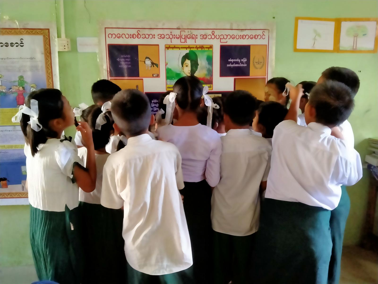 ထို့နောက် ကျောင်းအုပ်ဆရာမကြီးက ကျေးဇူးတင်စကားပြောကြားပြီး ပြန်ကြားရေးနှင့်ပြည်သူ့ဆက်ဆံရေးဦးစီးဌာနမှ ကျောင်းသား၊ ကျောင်းသူများ ဖတ်ရှုလေ့လာနိုင်ရန် ရုပ်ပြပုံပြင်များ၊ စာစောင်များစသည့် ကလေးများအသိပညာတိုးပွားရေး စာအုပ်စာပေများ၊ စာဖတ်ရှိန်မြှင့်တင်ရေးတို့နှင့် ပတ်သက်သည့် ဆောင်းပါး၊ ကဗျာ၊ ကာတွန်း သိမှတ်ဖွယ်ရာများ စသည့်အသိပညာပေးနံရံကပ်စာစောင်များ ဓာတ်ပုံများကို ခင်းကျင်းပြသခဲ့ရာ ကျောင်းသား၊ ကျောင်းသူများက စိတ်ပါ၀င်စားစွာ ကြည့်ရှုလေ့လာခဲ့ကြောင်း သိရသည်။