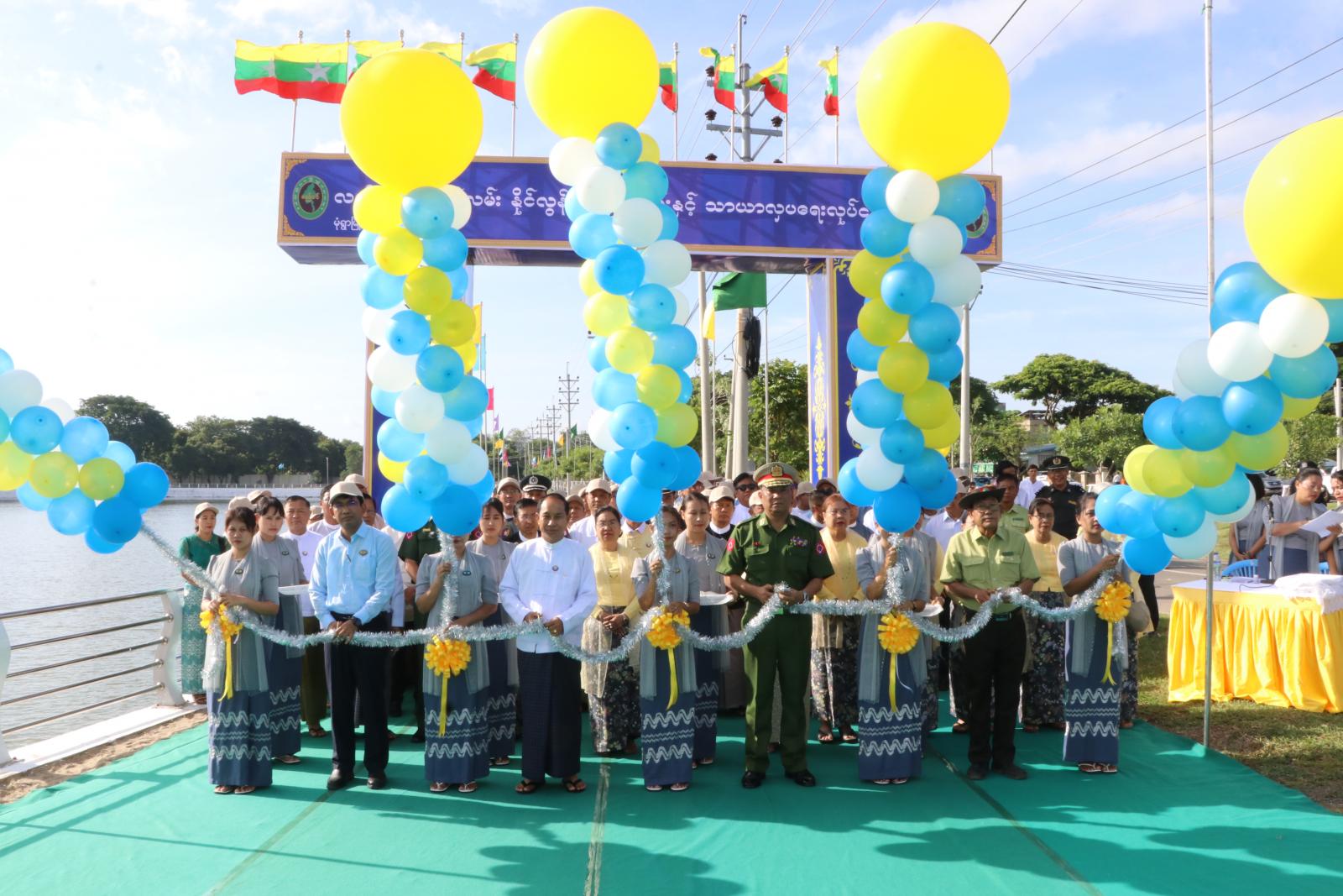 ယင်းနောက် တိုင်းဒေသကြီး စီးပွားရေးရာဝန်ကြီး ဒေါ်ရီရီသန်း၊ တိုင်းဒေသကြီး သယံဇာတရေးရာဝန်ကြီး ဦးတင်သန်းဝင်း၊ တိုင်းဒေသကြီး စီမံကိန်းရေးဆွဲရေးဦးစီးဌာန ညွှန်ကြားရေး ဦးဝင်းလိူင်၊ တိုင်းဒေသကြီး ရသုံးမှန်းခြေငွေစာရင်းဦးစီးဌာန ညွှန်ကြားရေးမှူး ဒေါ်မြင့်မြင့်ခိုင်တို့က ပြည်ထောင်စုရင်ပြင်မုခ်ဦးအား ဖဲကြိုးဖြတ်ဖွင့်လှစ်ပေးကြသည်။