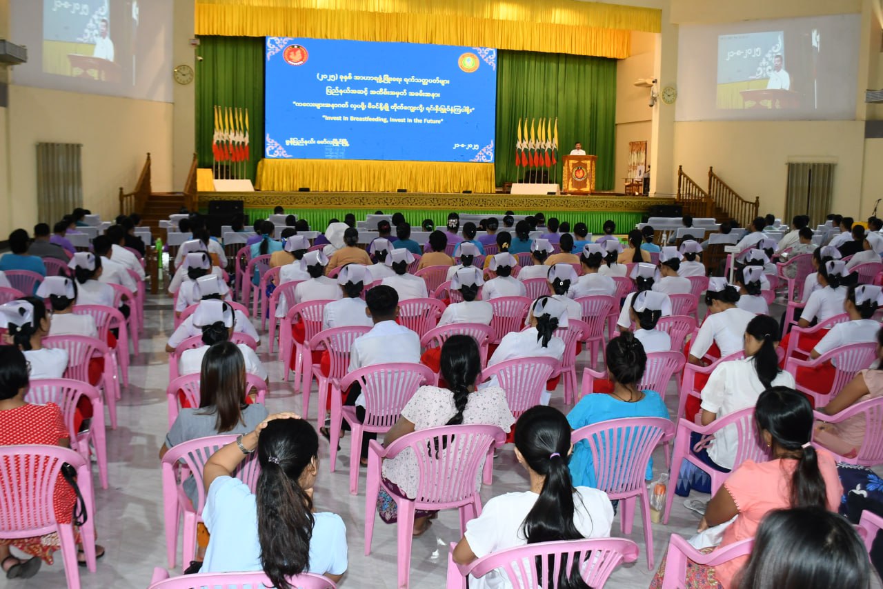 ဦးစွာ ပြည်နယ်ဝန်ကြီးချုပ် ဦးအောင်ကြည်သိန်းက လူတိုင်းသက်ရှည်ကျန်းမာပြီး ရောဂါဘယကင်းရှင်းစေရန် ပြည်သူအားလုံး အာဟာရပြည့်ဝမျှတဖို့က အဓိကအခြေခံအကျဆုံး လိုအပ်ချက်တစ်ခုဖြစ်ကြောင်း၊ မြန်မာနိုင်ငံမှာ အာဟာရစောင့်ရှောက်မှုလုပ်ငန်းများကို (၁၉၅၄) ခုနှစ်ကတည်းက စတင်ဆောင်ရွက်ခဲ့တာ အခုဆိုရင် နှစ်ပေါင်း (၇၀)ကျော်ခဲ့ပြီဖြစ်ကြေင်း၊ ကမ္ဘာ့ကျန်းမာရေးအဖွဲ့၊ ကုလသမဂ္ဂကလေးများ ရန်ပုံငွေအဖွဲ့တို့နှင့်ပူးပေါင်းပြီး အာဟာရဖွံ့ဖြိုးရေးရက်သတ္တပတ်လှုပ်ရှားမှုများကို (၂၀၀၃)ခုနှစ်ကစ၍ အကောင်အထည်ဖော်ဆောင်ရွက်ခဲ့တာ ယခုဆိုရင် (၂၂)နှစ်တိုင်ရှိပြီဖြစ်ကြောင်း၊ ကမ္ဘာ့ကျန်းမာရေးအဖွဲ့(WHO)၏ “ကလေးများအနာဂတ်လှပဖို့၊ မိခင်နို့ချိုတိုက်ကျွေးလို့၊ ရင်းနှီးမြှုပ်နှံကြပါစို့” ဆိုသည့် ဆောင်ပုဒ်သတ်မှတ်ထားပါကြောင်း၊ ပြည်သူများ ဘဝတစ်လျှောက်လုံး အာဟာရပြည့်ဝမျှတအောင် နေထိုင်စားသောက်တတ်ပြီး အနာရောဂါကင်းရှင်းကာ နိုင်ငံ၏ဖွံ့ဖြိုးတိုးတက်မှုကိုတိုင်းတာသည့် မိခင်နှင့်ကလေးသေနှုန်းများကျဆင်းစေရေး၊ အာဟာရပြည့်ဝပြီး ကာယနှင့်ဉာဏဖွံ့ဖြိုးသည့် မျိုးဆက်သစ်လူငယ်များ ပေါ်ထွက်လာစေရေး၊ ကလေးများ၏အနာဂတ်မှာ ကျန်းမာဖွံ့ဖြိုးသာယာစေရေးအတွက် အခြေခံကျပြီး အရေးပါသည့် အာဟာရဖွံ့ဖြိုးရေးလုပ်ငန်းများကို အရှိန်အဟုန်မြှင့်တင်ပြီး အားလုံးပူးပေါင်း ရင်းနှီးမြှုပ်နှံဆောင်ရွက်ပေးကြရန် အလေးအနက်တိုက်တွန်းလိုကြောင်း ပြောကြားခဲ့သည်။