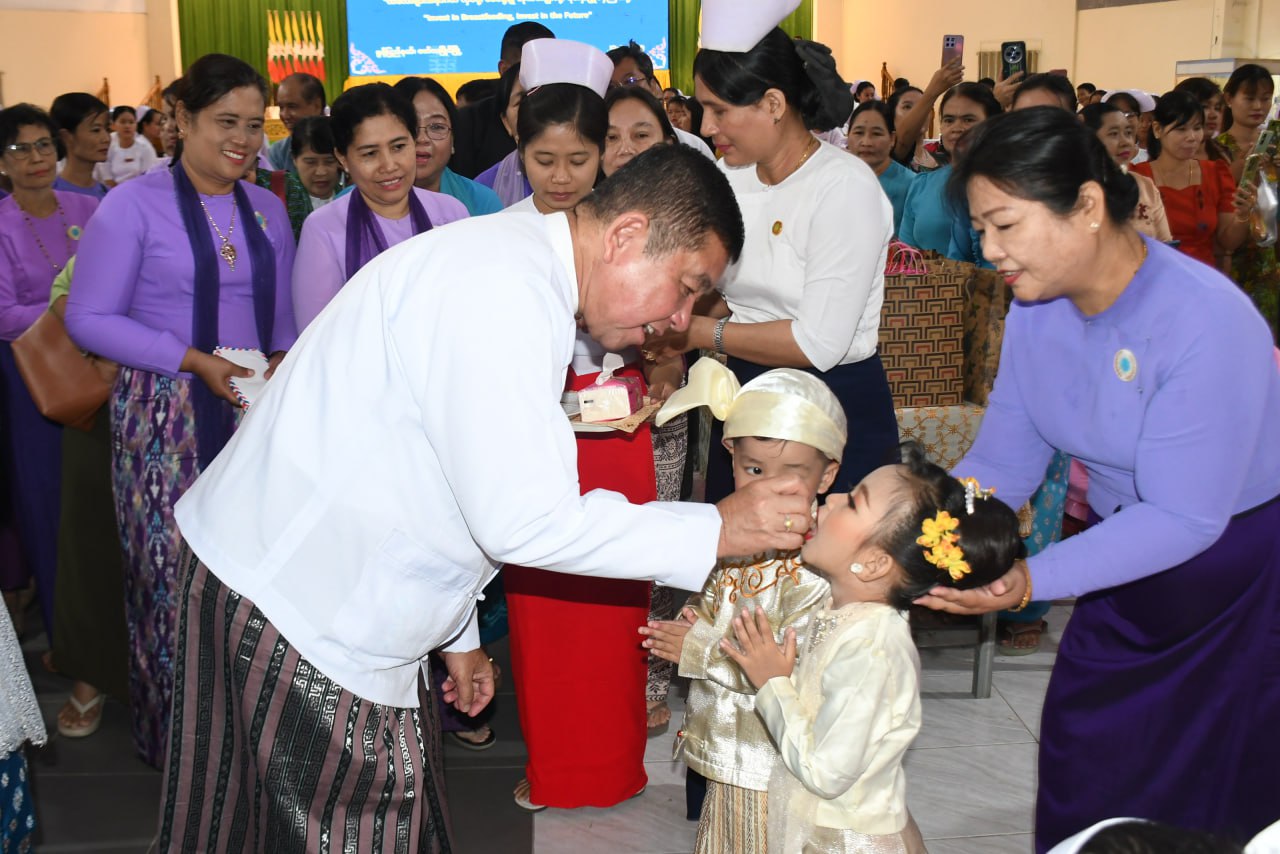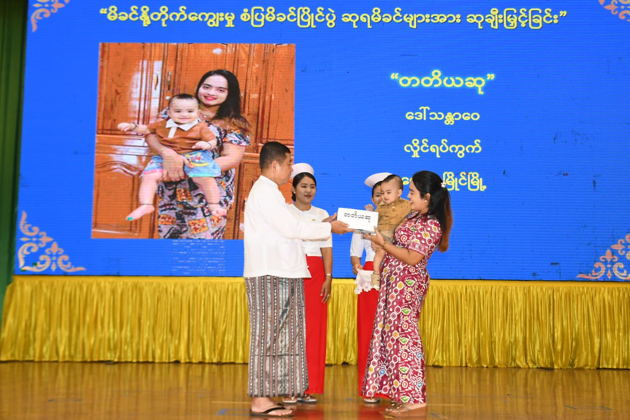 ထို့နောက် ၂၀၂၅ ခုနှစ် အာဟာရဖွံ့ဖြိုးရေး ရက်သတ္တပတ်အထိမ်းအမှတ် “ကိုယ်ဝန်ဆောင်ကာလ အာဟာရပြည့်ပြည့်ဝဝစားကြစို့” ဗီဒီယိုအားပြသခဲ့ပြီး ပြည်နယ်အဆင့် မိခင်နို့တိုက်ကျွေးမှု စံပြမိခင်ပြိုင်ပွဲတွင် နှစ်သိမ့်ဆုရရှိခဲ့သည့် နို့တိုက်မိခင်(၂)ဦးအား ပြည်နယ်မိခင်နှင့်ကလေးစောင့်ရှောက်မှုကြီးကြပ်ရေးအဖွဲ့ တာဝန်ရှိသူက ဂုဏ်ပြုချီးမြှင့်ငွေများ ပေးအပ်ခဲ့သည်။