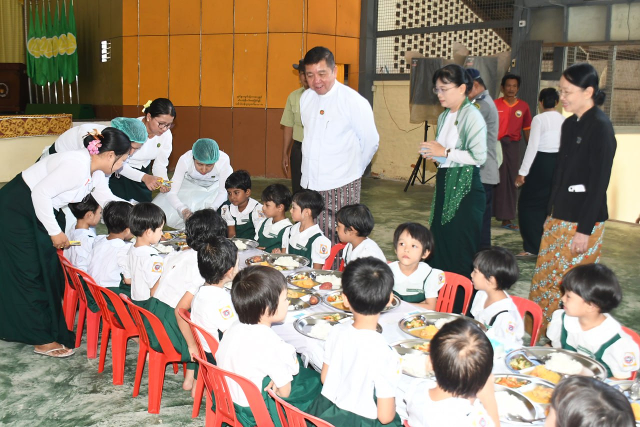 ဆက်လက်၍ ပြည်နယ်ဝန်ကြီးချုပ်နှင့်အဖွဲ့သည် အမှတ်(၈)အခြေခံပညာအထက်တန်းကျောင်းတွင် KG ကျောင်းသူလေးများအား ကျောင်းတွင်းအာဟာရ ချက်ပြုတ်ကျွေးမွေးနေမှုများကို လှည့်လှည်ကြည့်ရှုအားပေးခဲ့ကြောင်း သိရှိရသည်။