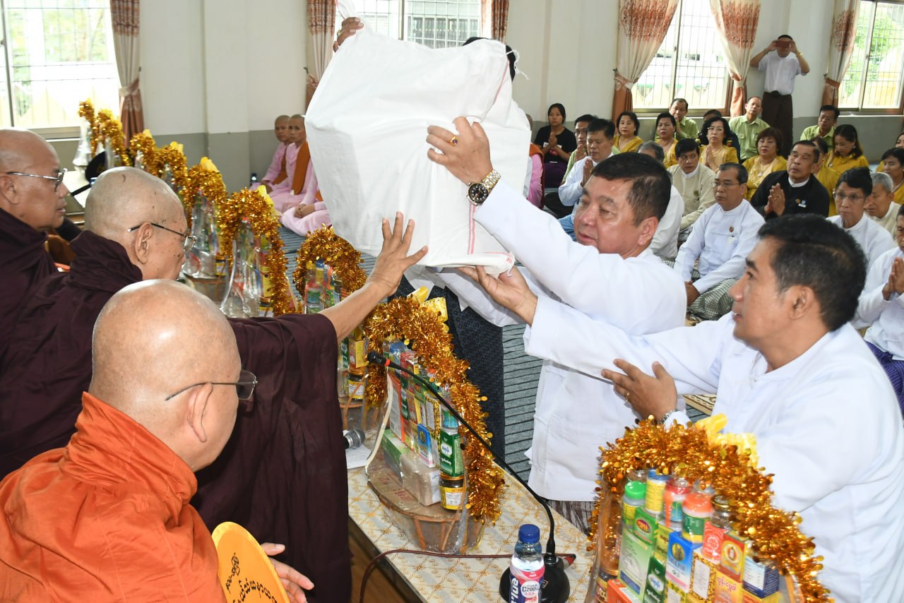 ထိုနောက် ဆံတော်ရှင်ကျိုက်သုတ် စေတီတော် ဘဏ္ဍာထိန်း ဂေါပကအဖွဲ ဥက္ကဠ ဦးအောင်ကျော်ဦးက ဆေးပဋ္ဌာန်းလှူဒါန်းရခြင်း အကြောင်းနှင့် ဆေးလှူဒါန်းသော အလှူရှင် များအား ကျေးဇူးတင်စကား ပြောကြားခဲ့ပြီး ကြွရောက်လာသော ဆရာတော် သံဃာတော်များထံ ကျန်းမာရေးအတွက် တိုင်းရင်းဆေးနှင့် နိုင်ငံခြားဆေးများကို “အာယုဒါန” ဆေးပစ္စည်း အလှူများနှင့် အလှူတော်ငွေများကို ပြည်နယ်၀န်ကြီးချုပ် ဦးအောင်ကြည်သိန်း၊ ပြည်နယ်တရား လွှတ်တော်တရားသူကြီးချုပ်၊ ပြည်နယ်အစိုးရအဖွဲ့၀င် ၀န်ကြီးများ၊ ဌာနဆိုင်ရာ အကြီး အကဲများ နှင့် အလှူရှင်များက ဆက်ကပ်လှူဒါန်းခဲ့ကြသည်။