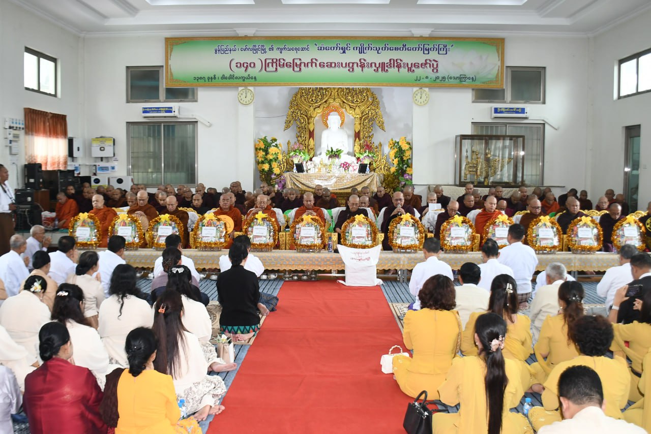ဆက်လက်၍ (၁၄၀) ကြိမ်မြောက် ဆေးပဌာန်းလှူဒါန်းပွဲအတွက် ပြုပြုသမျှ ကောင်းမှုအစုစုတို့အား မြစေတီကျောင်းတိုက် ဆရာတော်ထံမှအနုမောဒနာ တရားနာကြားပြီး ရေစက်သွန်းချ အမျှ ပေးဝေခဲ့ကြကာ ဗုဒ္ဓသာသနာစိရံတိဠတု သုံးကြိမ်ရွတ်ဆိုကာ အခမ်းအနား ပြီးမြောက်ခဲ့သည်။