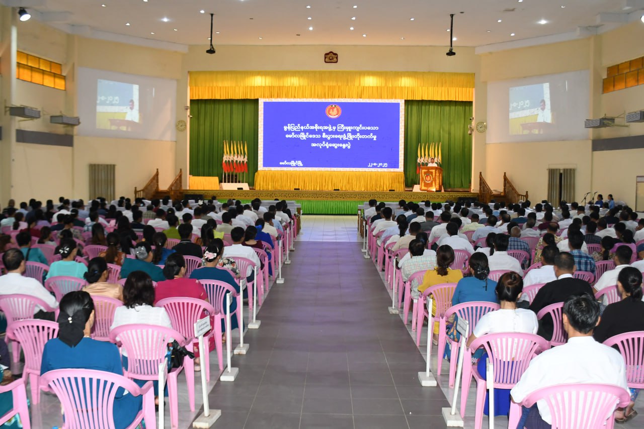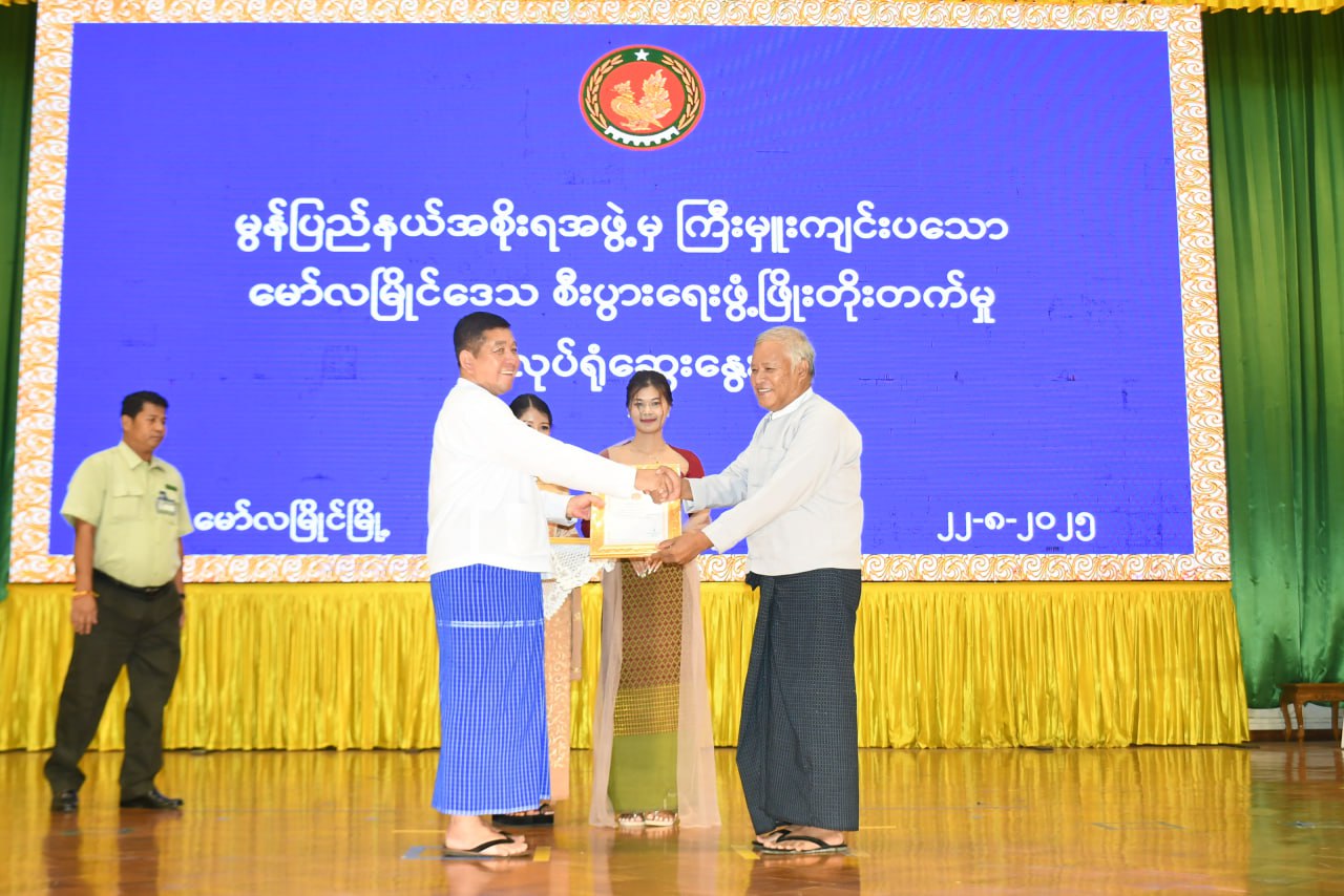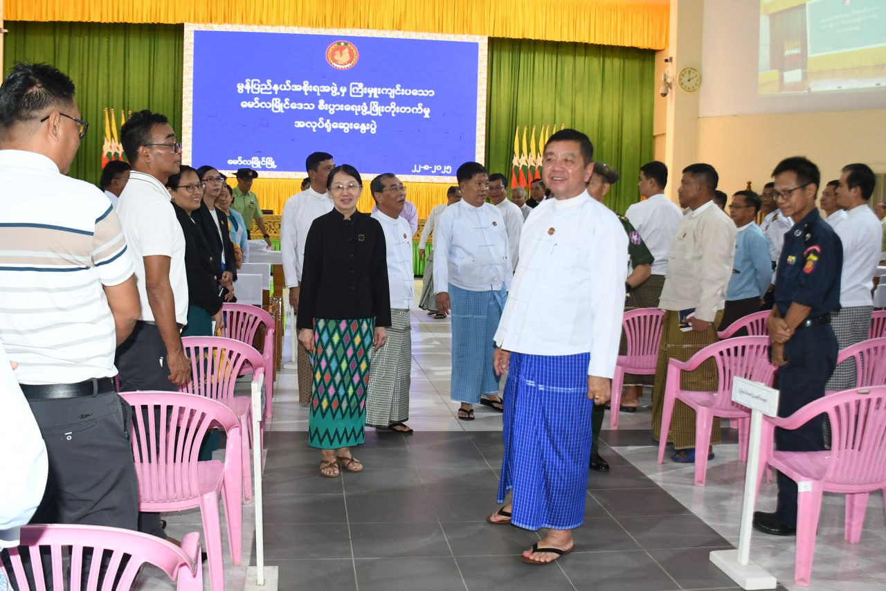 မွန်ပြည်နယ် မော်လမြိုင်မြို့ ဒေသစီးပွားရေးဖွံ့ဖြိုးတိုးတက်မှု အလုပ်ရုံဆွေးနွေးပွဲ အခမ်းအနားကို ယမန်နေ့ မွန်းလွဲပိုင်းက ပြည်နယ်ခန်းမ၌ ကျင်းပပြုလုပ်ရာ မွန်ပြည်နယ် ဝန်ကြီးချုပ် ဦးအောင်ကြည်သိန်း၊ ပြည်နယ်တရားလွှတ်တော်တရားသူကြီးချုပ်၊ ပြည်နယ်အစိုးရ အဖွဲ့ဝင်ဝန်ကြီးများ၊ ဌာနဆိုင်ရာတာဝန်ရှိသူများနှင့် ဖိတ်ကြားထားသော ဧည့်သည်တော်များ တက်ရောက်သည်။