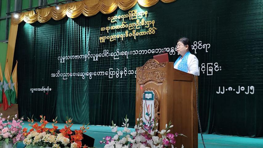 ဦးစွာ တိုင်းဒေသကြီး လူမှုဝန်ထမ်းဦးစီးဌာနမှ ညွှန်ကြားရေးမှူး ဒေါ်လှိုင်မိုးမြတ်က အဖွင့်အမှာစကား ပြောကြားပြီး လူမှုသဟဇာတနှင့် လူမှုပေါင်းစည်းရေးခေါင်းစဉ်ဖြင့်လည်းကောင်း၊ တိုင်းဒေသကြီး ဘေးအန္တရာယ်ဆိုင်ရာစီမံခန့်ခွဲမှုဦးစီးဌာန ညွှန်ကြားရေးမှူး ဦးစိုးလှိုင်က သဘာဝဘေးအန္တရာယ်ဆိုင်ရာ ကာကွယ်ရေးနှင့် လျော့ပါးရေးခေါင်းစဉ်ဖြင့်လည်းကောင်း အသိပညာပေး ဟောပြောဆွေးနွေးခဲ့သည်။
