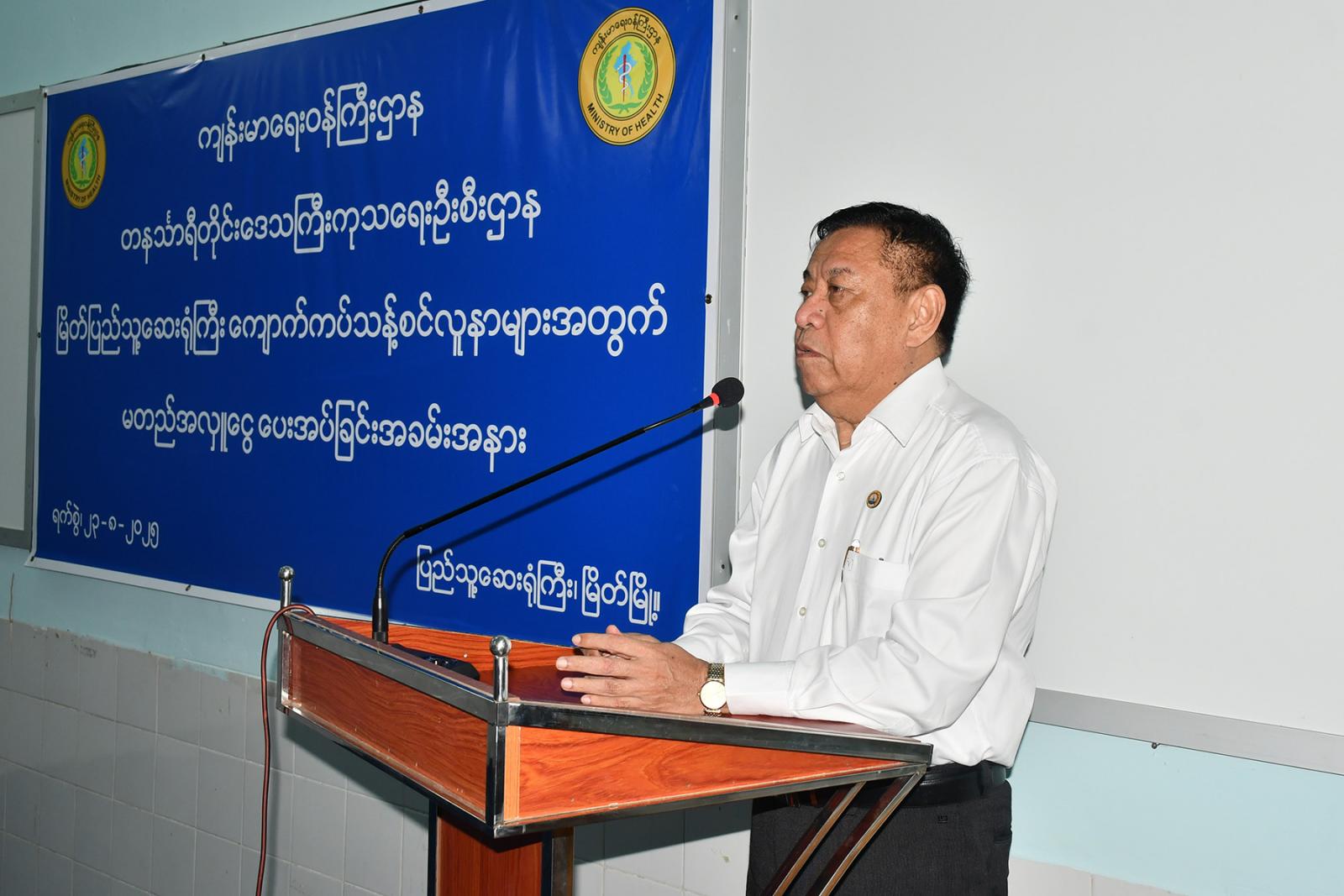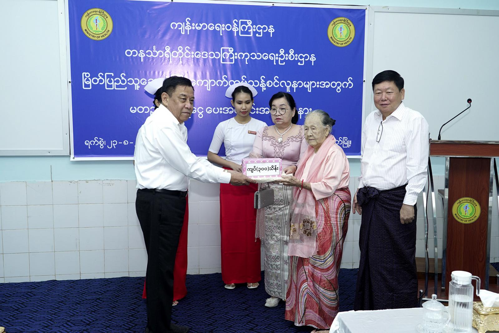 ရှေးဦးစွာ တိုင်းဒေသကြီး ဝန်ကြီးချုပ် ဦးမြတ်ကိုက ကျောက်ကပ်ရောဂါဝေဒနာရှင် ပြည်သူများနှင့် ကျောက်ကပ်ဆေးရမည့် ဝေဒနာရှင်များ အဘက်ဘက်မှ ဆေးကုသမှု အဆင်ပြေစေရေးနှင့် အခက်အခဲရှိသည့် လူနာများအတွက် ယခုလို အလှူငွေများ လာရောက်လှူဒါန်းပေးကြသူများကို ကျေးဇူးတင်ကြောင်းပြောကြားသည်။ ယင်းနောက် အထူးကုဆရာဝန်ကြီး(ဆေးပညာ) ဒေါက်တာ ခင်ခင်မြင့်က ကျောက်ကပ် သန့်စင်ခြင်း လုပ်ငန်းဆောင်ရွက်နေမှုနှင့် ဆေးကုသမှု အခြေအနေများအား ရှင်းလင်းတင်ပြသည်။