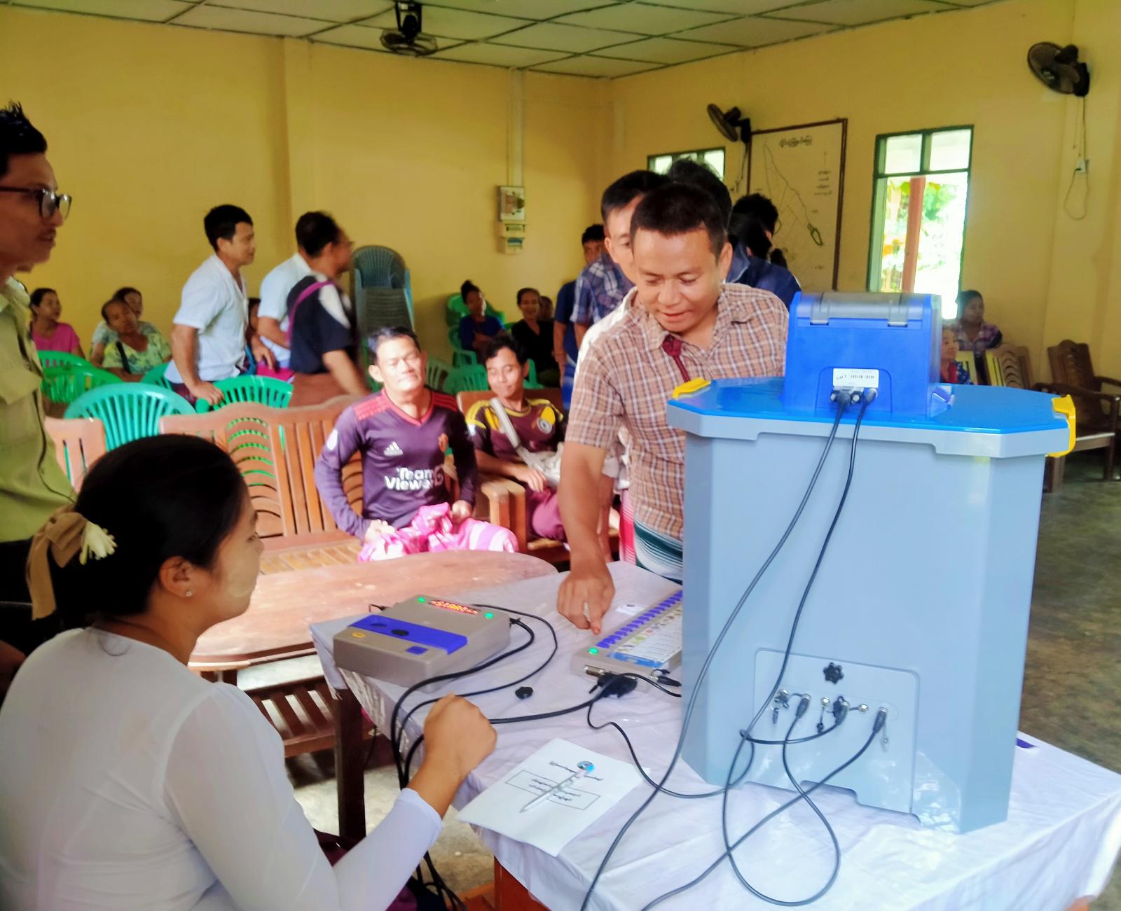 ကရင်ပြည်နယ်၊ ဘားအံခရိုင်၊ ပိုင်ကျုံမြို့၌ မဲဆန္ဒရှင်များအား မြန်မာအီလက်ထရောနစ်မဲပေးစက် (MYANMAR ELECTRONIC VOTING MACHINE) ဆိုင်ရာအသိပညာပေးခြင်းနှင့် လက်တွေ့စမ်းသပ်ဆန္ဒမဲပေးခြင်း သရုပ်ပြပွဲကို ဩဂုတ်လ ၂၅ ရက်နေ့ နံနက် ၁၀ နာရီအချိန်တွင် ပိုင်ကျုံမြို့ အထွေထွေအုပ်ချုပ်ရေးဦးစီးဌာန၌ ကျင်းပပြုလုပ်ခဲ့သည်။