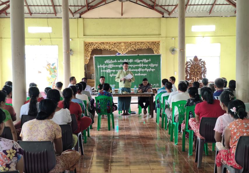ဦးစွာ မြို့နယ်စီမံခန့်ခွဲရေးနှင့်အုပ်ချုပ်ရေးကော်မတီဥက္ကဋ္ဌဦးအောင်မိုးလွင်က ပါတီစုံဒီမိုကရေစီအထွေထွေရွေးကောက်ပွဲနှင့်ပတ်သက်၍ သိမှတ်ဖွယ်ရာများပြောကြားခြင်း၊ အဖွဲ့ဝင်ဗိုလ်မှူးသက်ထွန်းဦးမှ ပြည်သူ့စစ်မှုထမ်းဥပဒေနှင့်ပတ်သက်၍ပြောကြားခြင်း၊ မြို့နယ်ရဲတပ်ဖွဲ့မှူးရဲမှူးမိုးမြင့်မှ အကြမ်းမှုတိုက်ဖျက်ရေးနှင့်ရွေးကောက်ပွဲနှင့်ပတ်သက်၍ အသိပညာပေးခြင့်နှင့် ဥပဒေဆိုင်ရာပြစ်မှု/ပြစ်ဒဏ်များအား ချပြရှင်းလင်းခြင်း၊ လိုင်စင်မဲ့မော်တော်ယာဉ်/မော်တော်ဆိုင်ကယ်များမောင်နှင် ဖမ်းဆီးမှုနှင့်ပတ်သက်၍ချပြရှင်းလင်းခြင်း၊ မြို့နယ်ဆည်မြောင်းဦးစီးမှူးဦးရွှေဝင်းက ရေရရှိရေး ချပြရှင်းလင်းပြောကြားရာ တက်ရောက်လာသူများမှ သိရှိလိုသည်များကိုမေးမြန်းရာ တာဝန်ရှိသူမှပြန်လည်ရှင်းလင်းပြောကြားခဲ့ကြကြောင်း သိရသည်။