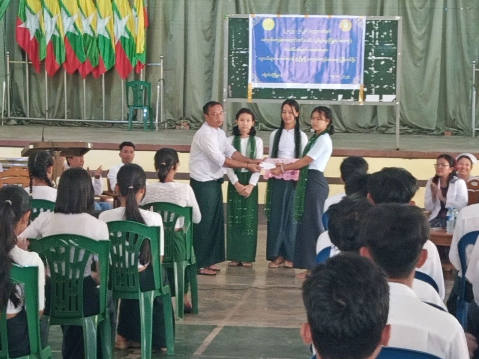 ဆက်လက်၍ မြို့နယ်ကုသရေးနှင့်ပြည်သူ့ကျန်းမာရေးဦးစီးဌာနမှ ဒေါက်တာမြတ်ပန်းနုအောင်ကမူးယစ်ဆေးဝါးအစဆေးလိပ်ကခေါင်းစဉ်နှင့် ဖြစ်ပေါ်နိုင်သည့်ရောဂါများအကြောင်းဟောပြောကာ အမှတ်(၁)အခြေခံပညာအထက်တန်းကျောင်းမှ အထက်တန်းအဆင့် ကျောင်း သား၊ ကျောင်းသူ(၁၀၀)ဦးအား ကျန်းမာရေးအတွက်ခေါင်းစဉ်ဖြင့် မေးခွန်းပေါင်း(၅၀)ကိုဖြေဆိုချိန်(၄၅)မိနစ်ပေးပြီး အမှားအမှန်ခြစ်၍ ပြိုင်ပွဲကျင်းပဖြေဆိုစေရာ အမှတ်အများဆုံးရသည့်ကျောင်းသား၊ ကျောင်းသူ(၆)ဦးအား မြို့နယ်ကုသရေးနှင့်ပြည်သူ့ကျန်းမာရေးဦးစီးဌာန၊ မြို့နယ်ဆရာဝန်ကြီး ဒေါက်တာခွန်မောင်အိုးနှင့်တာဝန်ရှိသူများက ဂုဏ်ပြုဆုများချီးမြှင့်ပေးခဲ့သည်။
