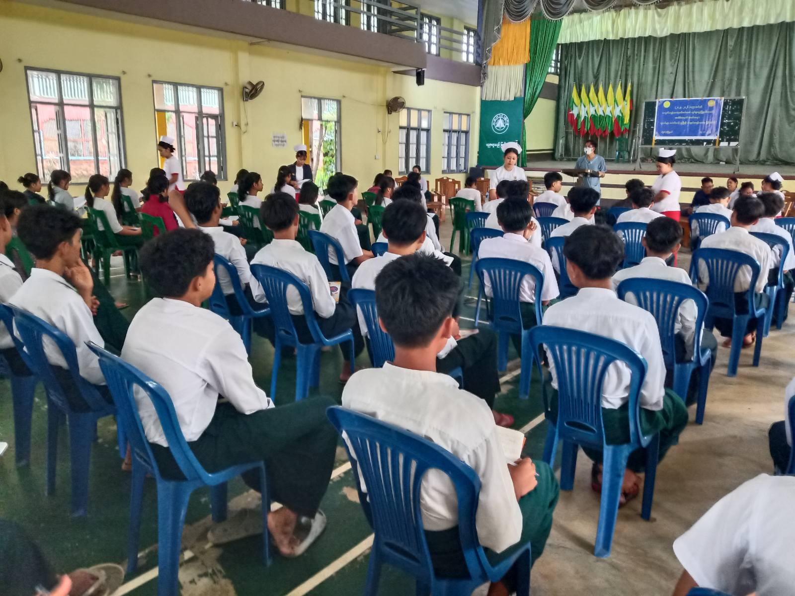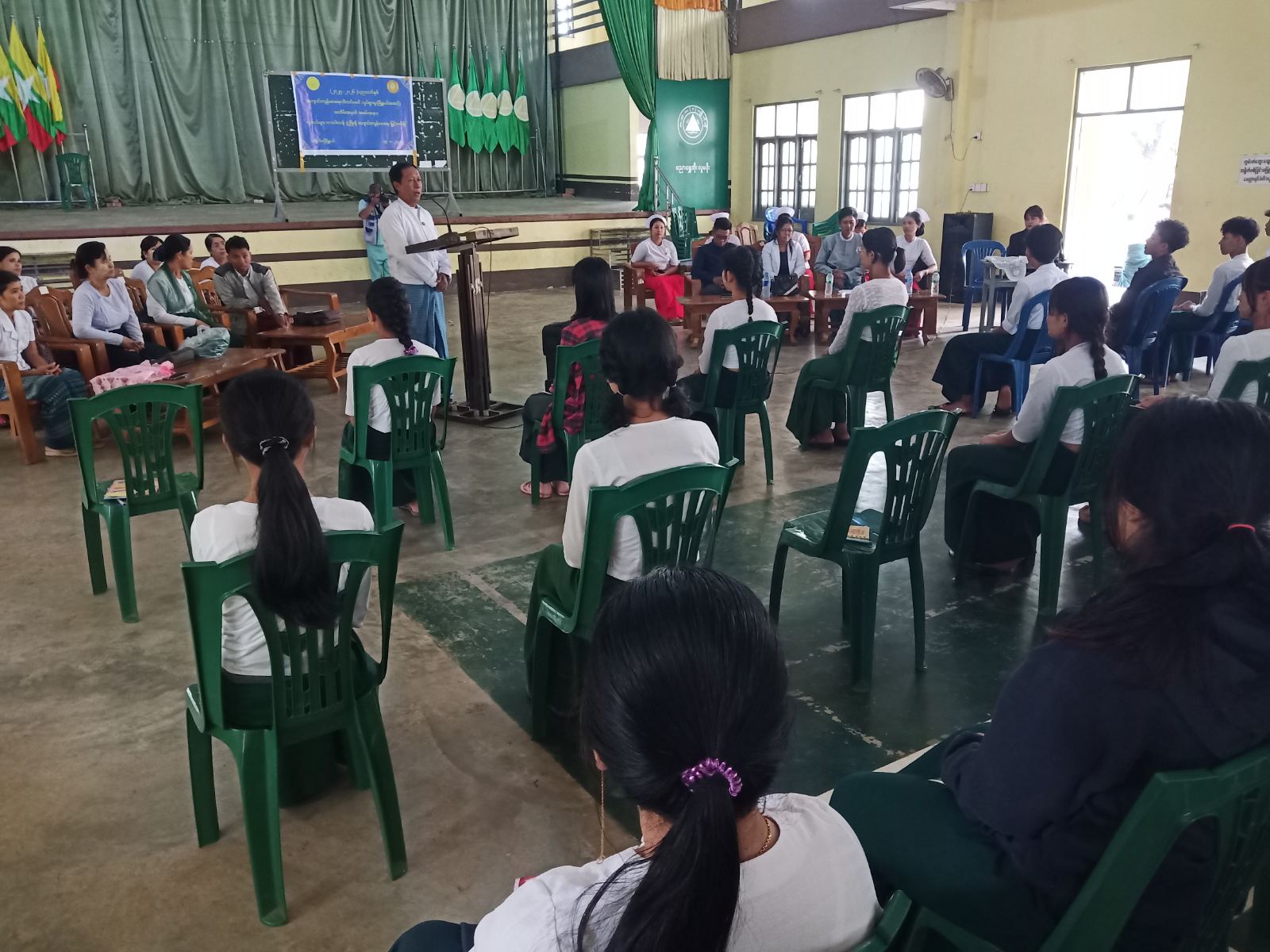 ရှေးဦးစွာ မြို့နယ်ပညာရေးမှူးဦးမောင်ညိုကအဖွင့်အမှာစကားပြောကြားပြီး မြို့နယ်ကုသရေးနှင့်ပြည်သူ့ကျန်းမာရေးဦးစီးဌာနမှ ကျန်းမာ ရေးမှူးအဆင့်(၁)ဦးထွန်းညီညီက လူငယ်များဗလငါးတန်ဖွံ့ဖြိုးဖို့ ကျောင်းကျန်းမာရေးမြှင့်တင်စို့ ဆောင်ပုဒ်နှင့်အညီ ကျောင်းကျန်းမာရေးပြုလုပ်ရခြင်းရည်ရွယ်ချက်ကို ရှင်းလင်းပြောကြားခဲ့သည်။