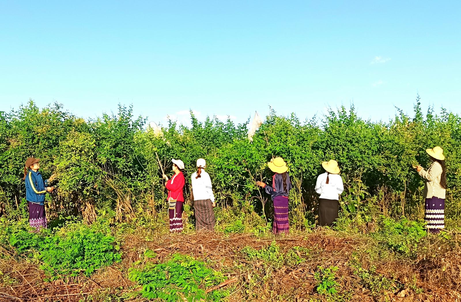 “ ဒီနှစ် မိုးရာသီမှာ ပဲမျိုးစုံစိုက်ပျိုးမှုအဖြစ် ပဲစင်းငုံနဲ့ ပဲတီစိမ်း သီးနှံများ စိုက်ပျိုးကြပါတယ်။ ပဲစင်းငုံသီးနှံကို မြေပဲ၊ ပြောင်းတို့နဲ့ သီးညှပ်စိုက်ပျိုးသလို သီးသန့်လည်း စိုက်ပျိုးကြပါတယ်။ အခုအခါ ပဲစင်းငုံစိုက်ခင်းများမှာ ပန်းပွင့်ချိန် ပိုးမွှားကျရောက်တတ်တဲ့အတွက် ကွင်းဆင်းစစ်ဆေးခြင်းဖြစ်ပါတယ်” ဟု မြို့နယ်စိုက်ပျိုးရေးဦးစီးဌာန၊ ဦးစီးမှူး ဒေါ်မြင့်မြင့်ရီက ပြောသည်။
