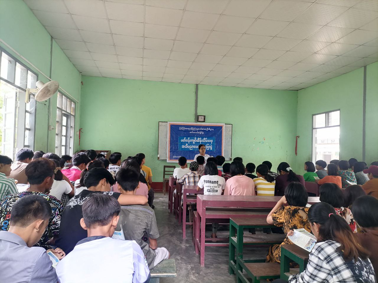 ရှေးဦးစွာ ယင်းမာပင်ခရိုင် ပြန်ကြားရေးနှင့်ပြည်သူ့ဆက်ဆံရေးဦးစီးဌာနမှ ဒုတိယဦးစီးမှူး ဒေါ်မြင့်မြင့်အေးက ကျောင်းသား၊ ကျောင်းသူများအား စာဖတ်ရှိန် မြှင့်တင်ရေးနှင့် ပတ်ဝန်ကျင် ထိန်းသိမ်းရေးဆိုင်ရာ သိကောင်းစရာများကို အသိပညာပေးဟောပြောခဲ့သည်။