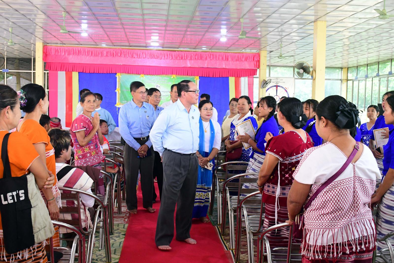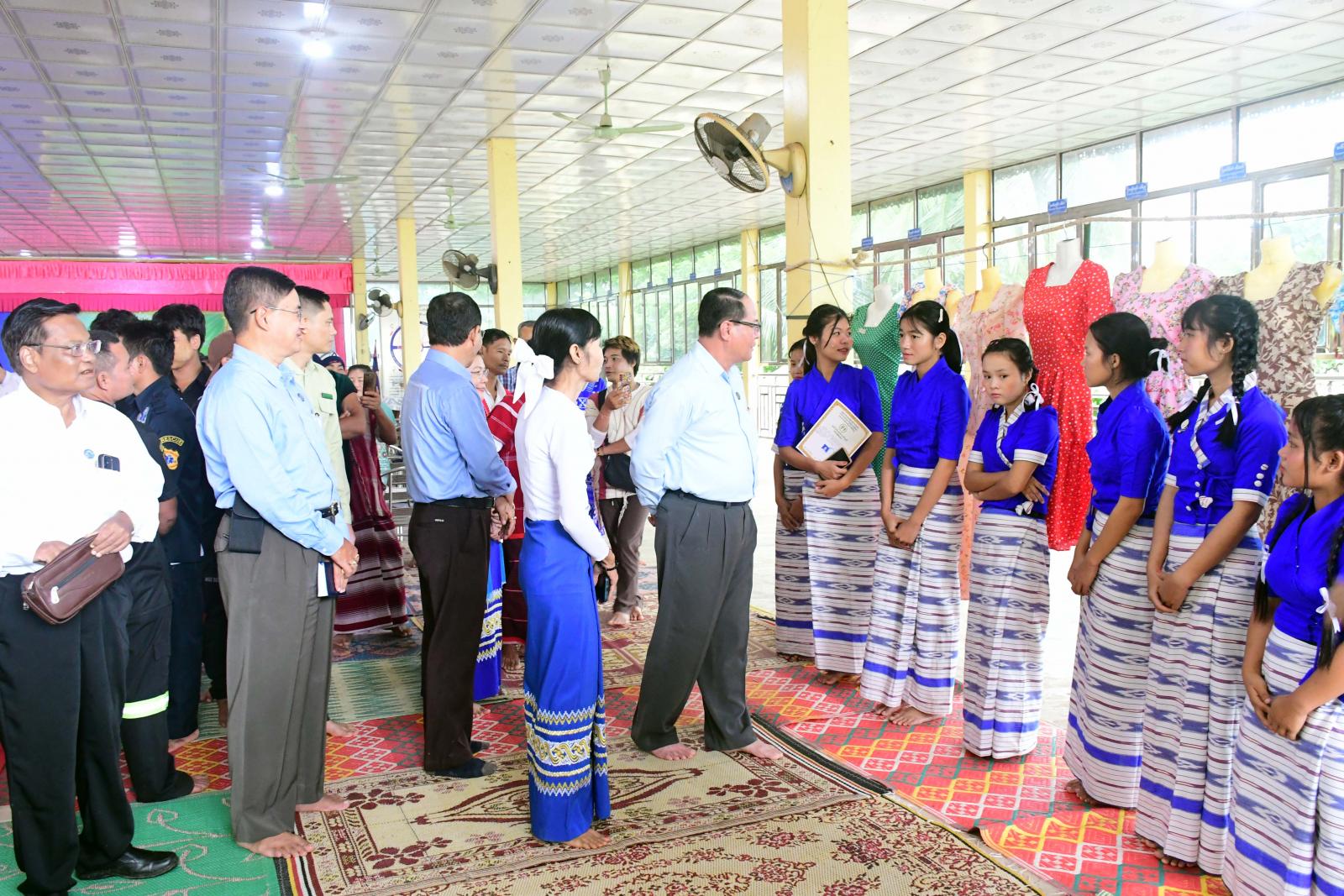 ယင်းနောက် ပြည်နယ်လမ်းပန်းဆက်သွယ်ရေးဝန်ကြီးဦးညီညီဇော်က သင်တန်းထွက်ကုန်ချော ပစ္စည်းများကို ပေးအပ်ပြီး ရပ်မိရပ်ဖတစ်ဦးက ကျေးဇူးတင်စကားပြောကြားသည်။