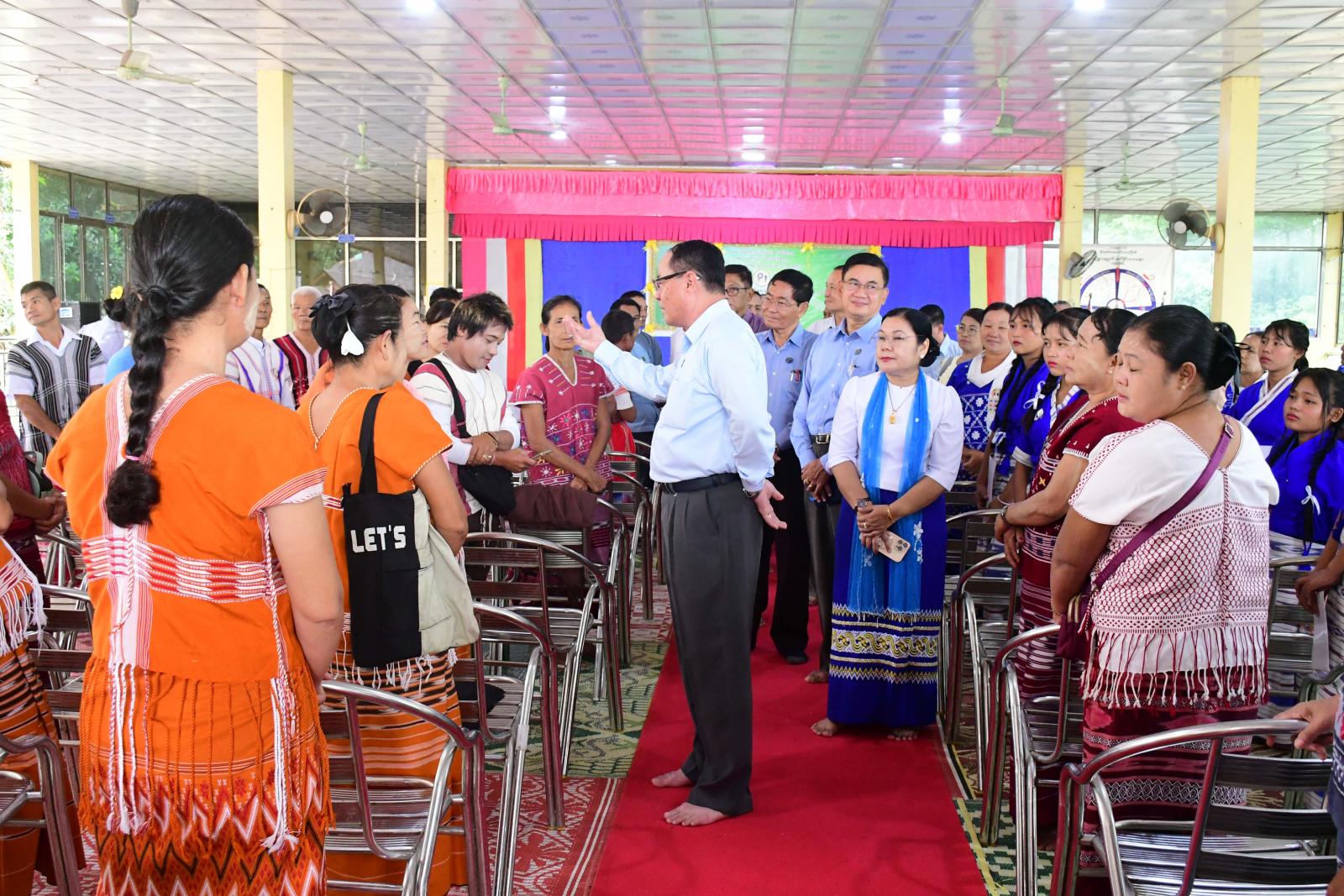 ယနေ့သင်တန်းဆင်းပွဲတွင် ကြို့ချောင်းကျေးရွာမှ သင်တန်းသူ(၁၀)ဦးသင်တန်းဆင်းခဲ့ကြပြီး ပြည်နယ်ဝန် ကြီးချုပ်နှင့်တာဝန်ရှိသူများက သင်တန်းဆင်းသင်တန်းသူများနှင့်တက်ရောက် လာသူများအား ရင်းနှီးနွေးထွေးစွာတွေ့ဆုံနှုတ်ဆက်၍ အားပေးစကားများပြောကြားကာ သင်တန်းသူများကိုယ်တိုင်ချုပ်လုပ်ထားသော အဝတ်အထည်များ ကို လှည့်လည်ကြည့်ရှု အားပေးခဲ့ကြသည်။