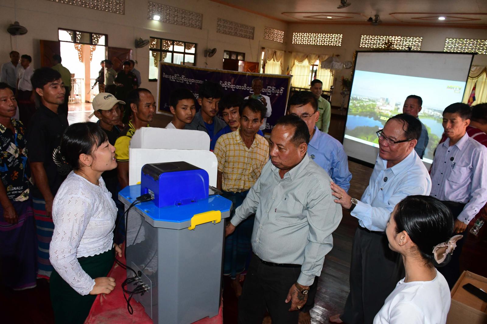 ထို့နောက် လှိုင်းဘွဲမြို့နယ်ရွေးကောက်ပွဲကော်မရှင်အဖွဲ့ခွဲမှ တဝန်ဖန်ရမင်္ဂလာသီဝံဘုန်းတော်ကြီး ကျောင်းဓမ္မာရုံ၌ မဲဆန္ဒရှင်ပြည်သူများအား မဲပေးစက်ဆိုင်ရာအသိပညာပေးခြင်းနှင့် လက်တွေ့ စမ်းသပ်မဲပေးခြင်းတို့ကို ဆောင်ရွက်ရာ လှိုင်းဘွဲမြို့နယ်ရွေးကောက်ပွဲကော်မရှင်အဖွဲ့ခွဲမှ တာဝန်ရှိသူများက မဲဆန္ဒရှင်များမဲမပေးမီသိသင့် သိထိုက်သည့်အချက်များနှင့် မဲပေးစက်ဆိုင်ရာ များကို ရှင်းလင်းပြောကြားပြီး တက်ရောက်လာသော တဝန်ဖန်ရ၊ ဥဒေါင်း၊ သိုက်တော၊ တခင်းလုံကျေးရွာများမှ ပြည်သူများအား လက်တွေ့စမ်းသပ် မဲပေးစေခဲ့ရာ ပြည်နယ်ဝန်ကြီးချုပ် နှင့်တာဝန်ရှိသူများက ကြည့်ရှုအားပေးခဲ့ကြကြောင်း သိရသည်။