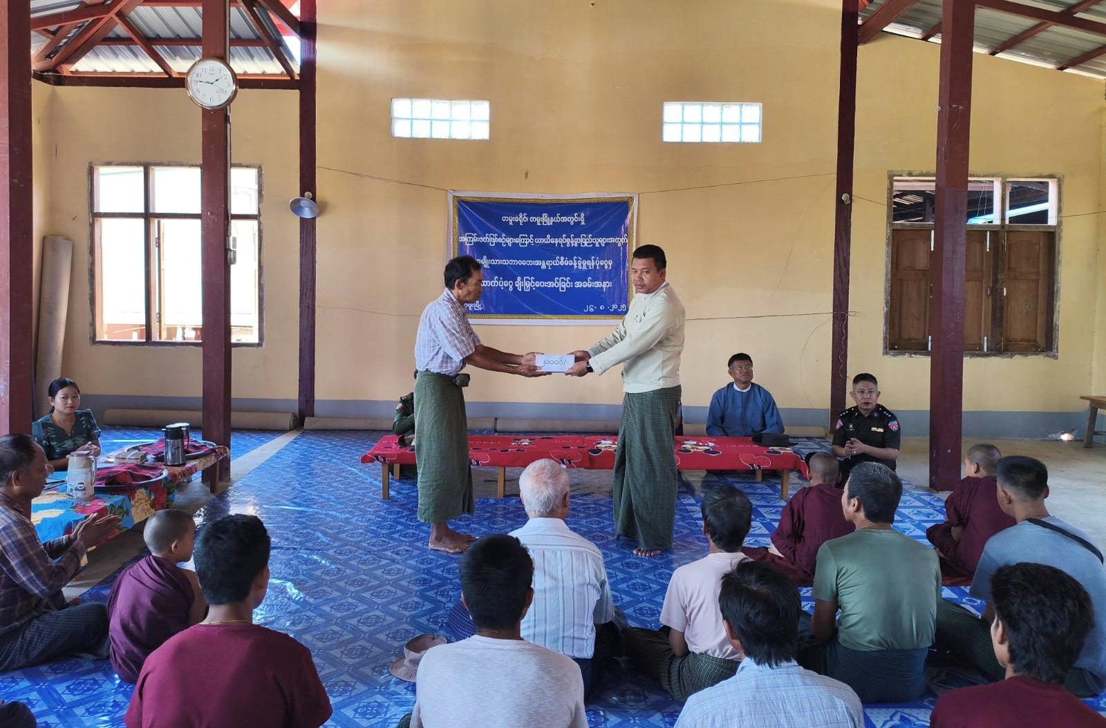 အဆိုပါအခမ်းအနားသို့ မြို့နယ်စီမံခန့်ခွဲရေးနှင့်အုပ်ချုပ်ရေးကော်မတီဥက္ကဋ္ဌ ဦးအောင်ကျော်မိုးနှင့် အဖွဲ့ဝင်ဗိုလ်မှူး မျိုးမင်းအောင်၊ မြို့နယ်ရဲတပ်ဖွဲ့မှူး ရဲမှူးကျော်သူနှင့် အဖွဲ့ဝင်များ မြို့နယ်နေရပ်စွန့်ခွာပြည်သူများသို့ ထောက်ပံ့ငွေများပေးအပ်ရေး ကြီးကြပ်မှုကော်မတီအဖွဲ့ဝင်များ၊ ယာယီနေရပ်စွန့်ခွာနေကြသည့် တိုက်ပွဲရှောင်ပြည်သူများ တက်ရောက်ခဲ့ကြသည်။