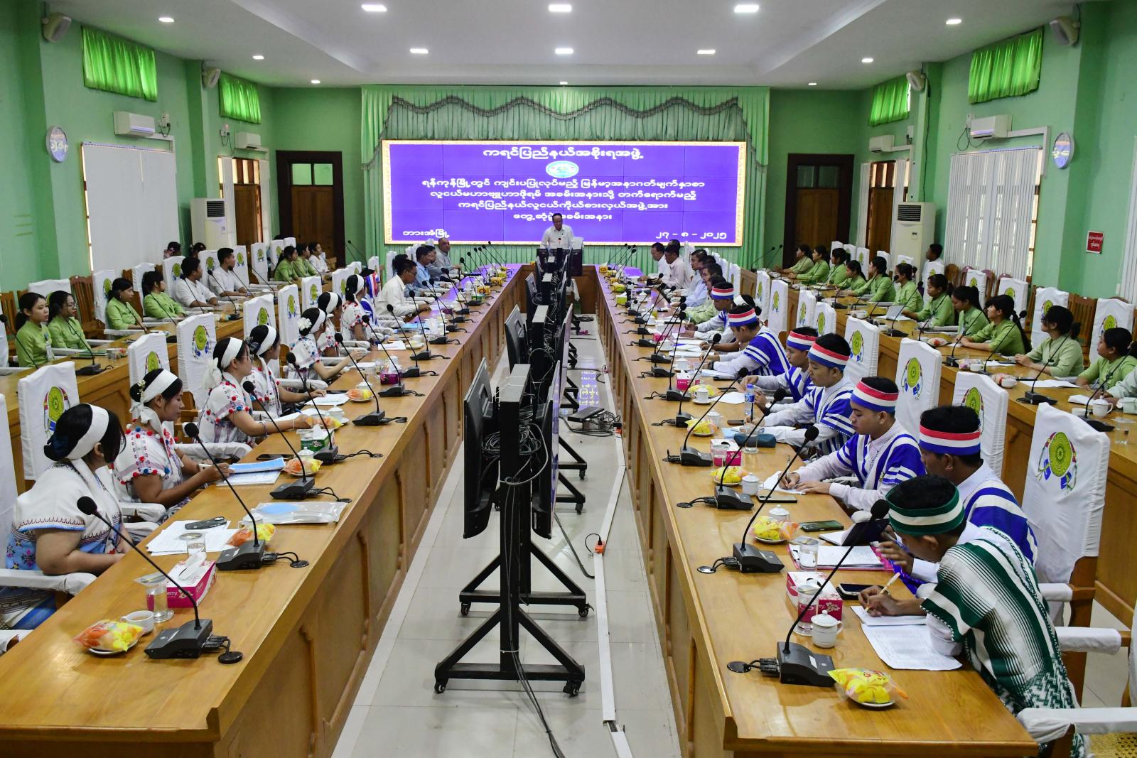 ဆက်လက်၍ ပြည်နယ်ဝန်ကြီးချုပ်ဦးစောမြင့်ဦး၊ ပြည်နယ်တရားလွှတ်တော်တရားသူကြီးချုပ် ဦးညွန့်လင်း၊ ပြည်နယ်အစိုးရအဖွဲ့ဝင်များသည် ရန်ကုန်မြို့တွင် ကျင်းပပြုလုပ်မည့် မြန်မာ့အနာဂတ်မျက်နှာစာ လူငယ်မဟာဗျူဟာ ဖိုရမ်အခမ်းအနားသို့တက်ရောက်မည့် ကရင်ပြည်နယ် လူငယ်ကိုယ်စားလှယ်အဖွဲ့အား ဩဂုတ်လ ၂၇ ရက်နေ့ မွန်းလွဲ ၂ နာရီက ပြည်နယ်အစိုးရအဖွဲ့ရုံး၊ အစည်းအဝေးခန်းမ (၂) ၌ လက်ခံတွေ့ဆုံခဲ့ကြသည်။