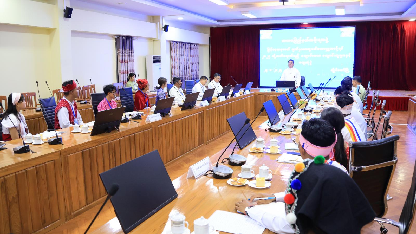 မြန်မာ့အနာဂတ်မျက်နှာစာ လူငယ်မဟာဗျူဟာဖိုရမ် - ၂၀၂၅ သို့ ကယားပြည်နယ်မှ ကျောင်းသား၊ ကျောင်းသူများက တက်ရောက်သွားမည်ဖြစ်ရာ ပြည်နယ်ဝန်ကြီးချုပ် ဦးဇော်မျိုးတင်သည် ယနေ့နံနက်က ပြည်နယ်အစိုးရအဖွဲ့ရုံးအစည်းအဝေးခန်းမ၌ အဆိုပါဖိုရမ်သို့ ပြည်နယ်ကိုယ်စားပြု တက်ရောက်ကြမည့် ကျောင်းသား၊ ကျောင်းသူများနှင့်တွေ့ဆုံ၍ အားပေးစကားပြောကြားသည်။