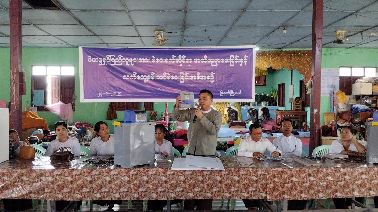 အဆိုပါဟောပြောပွဲတွင် မြဝတီမြို့နယ်ရွေးကောက်ပွဲကော်မရှင်အဖွဲ့ခွဲမှဥက္ကဋ္ဌနှင့် အဖွဲ့ဝင်များက ပါတီစုံဒီမိုကရေစီအထွေထွေ ရွေးကောက်ပွဲနှင့်ပတ်သက်၍ အများပြည်သူများသိသင့်သိထိုက်သည့်အချက်များ၊ မဲပေးပိုင်ခွင့်ရှိသူများ၊ အသက်(၁၈)နှစ်ပြည့်ပြီး မဲပေးပိုင်ခွင့်မရှိသူများနှင့်ပတ်သက်သည့်အချက်များ၊ မြန်မာအီလက်ထရောနစ်မဲပေးစက် အသုံးပြုပုံနှင့် မဲဆန္ဒရှင်ပြည်သူများအနေဖြင့် သိသင့်သိထိုက်သော အချက်အလက်များအား အသိပညာပေးဟောပြောပြီး မဲဆန္ဒရှင်ပြည်သူများက လက်တွေ့စမ်းသပ်မဲပေးကြသည်။