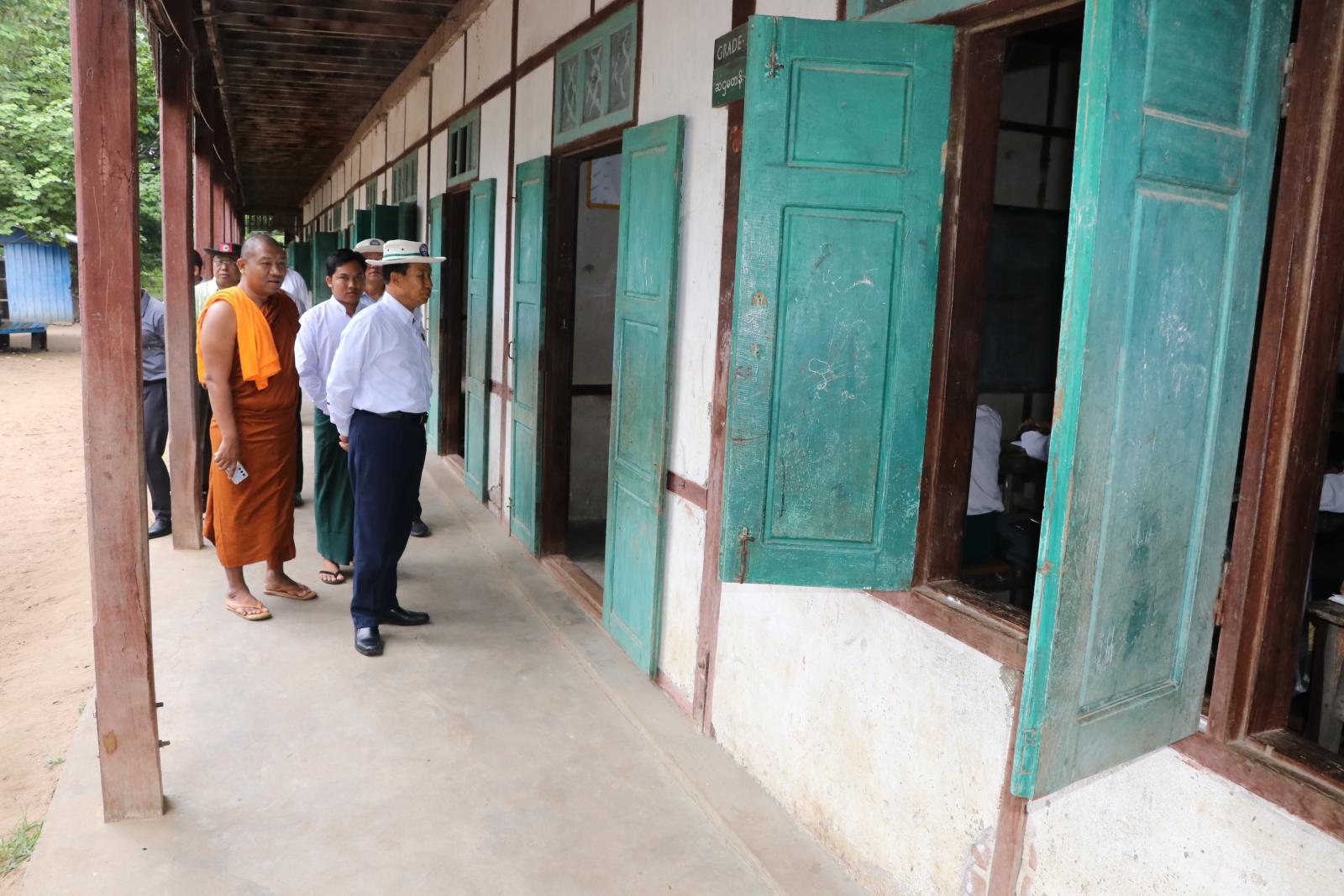 ဆက်လက်၍ တိုင်းဒေသကြီးဝန်ကြီးချုပ်နှင့်တာဝန်ရှိသူများသည် ကန့်ဘလူမြို့နယ်၊ တောက္ကရှပ်ကျေးရွာ၊ အခြေခံပညာအထက်တန်းကျောင်း(ခွဲ)သို့ရောက်ရှိရာ ကျောင်းသား/ကျောင်းသူများ၏ ဘင်ခရာအဖွဲ့လေ့ကျင့်တီးခတ်နေများအားကြည့်ရှုအားပေးကြပြီး ဂုဏ်ပြုချီးမြှင့်ငွေကျပ်- ၁၀ သိန်းအား ပေးအပ်ချီးမြှင့်ခဲ့ပြီး အဆိုပါကျောင်းရှိ သက်မှတ်ကျောင်းဆောင်များတွင် ကျောင်းသား/ကျောင်းသူများ စိတ်အေးချမ်းသာစွာဖြင့် ပညာသင်ကြားနေမှုများအားလိုက်လံကြည့်ရှုခဲ့ကြပြီး လိုအပ်သည်များကို တာဝန်ရှိသူများနှင့်ဖြည့်ဆည်း ပေါင်းစပ်ဆောင်ရွက်ပေးခဲ့သည်။