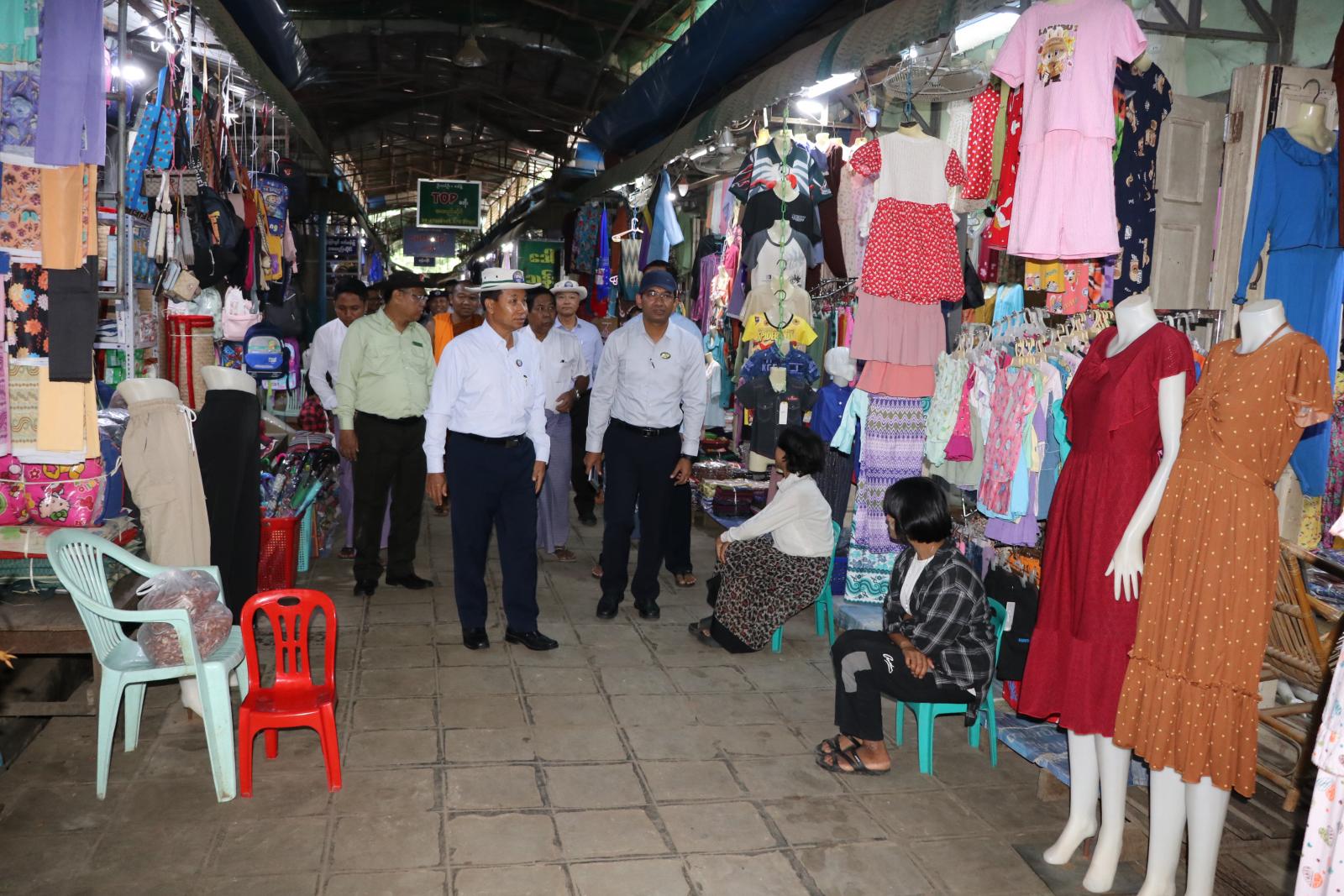 ယင်းနောက် တိုင်းဒေသကြီးဝန်ကြီးချုပ်နှင့်တာဝန်ရှိသူများသည် ကန့်ဘလူမြို့၊ မြို့မဈေးကြီးသို့ရောက်ရှိရာ ဈေးကြီးအတွင်းရှိအဝတ်အထည်ဆိုင်များ၊ လူသုံးကုန်ပစ္စည်းများ၊ ဟင်းသီးဟင်းရွက်များနှင့် စားသောက်ကုန်များအေးချမ်းတည်ငြိမ်စွာဖြင့် ရောင်းဝယ်ဖောက်ကားနေမှုများအား လိုက်လံကြည့်ရှုခဲ့ကြပြီး ဈေး ရောင်းချနေသူများအား ရင်းရင်းနှီးနှီးနှုတ်ဆက်ကာ ဈေးကြီးအတွင်းသန့်ရှင်းသပ်ရပ်မှုရှိစေရေး၊ ရေစီးရေလာကောင်းမွန်စေရေး၊ ဈေးဆိုင်ခန်းများနှင့်ဈေးရုံများ လုံခြုံစိတ်ချစွာဖြင့် ရောင်းဝယ်ဖောက်ကားမှုပြုဘုပ်နိုင်ရန်စီမံထားရေးနှင့် မီးဘေးအန္တရာယ်ကြိုတင်ကာကွယ်ရေးလုပ်ငန်းများဆောင်ရွက်သွားရေးတို့အား တာ ဝန်ရှိသူများကိုမှာကြားခဲ့ပြီး လိုအပ်သည်များကို တာဝန်ရှိသူများနှင့် ဖြည့်ဆည်းပေါင်းစပ်ဆောင်ရွက်ပေးခဲ့သည်။