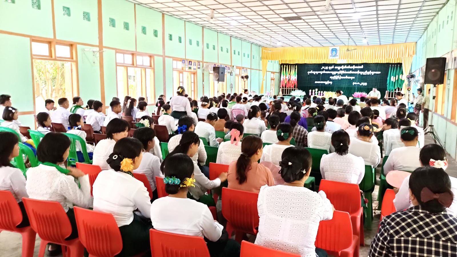 ဦးစွာ မြို့နယ်စီမံခန့်ခွဲရေးနှင့်အုပ်ချုပ်ရေးကော်မတီဥက္ကဋ္ဌ ဦးဘုန်းမြင့်နိုင်၊ မြို့နယ်ပညာရေးမှူး ဦးမြင့်လွင်တို့က အမှာစကားပြောကြားပြီး ကျောင်းအုပ်ဆရာမကြီး ဒေါ်မြင့်မြင့်စိန်က ဂုဏ်ပြုပွဲကျင်းပရခြင်းနှင့် ကျောင်းဆိုင်ရာလုပ်ငန်းများ ရှင်းလင်းပြောကြားသည်။
