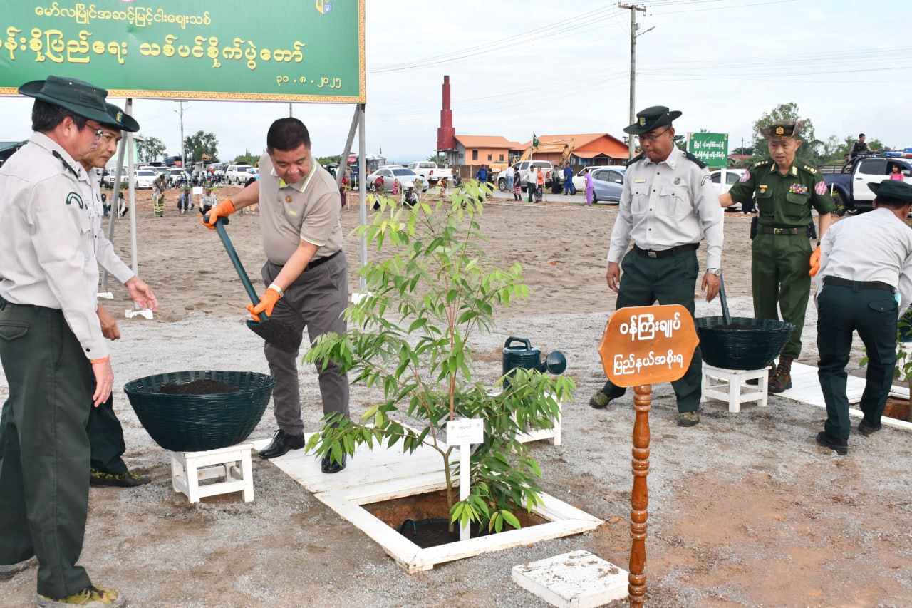 မွန်ပြည်နယ်၊ မော်လမြိုင်မြို့၊ အဆင့်မြင့်ငါးဈေးပတ်ဝန်းကျင်၌ ၂ဝ၂၅ ခုနှစ်၊ မိုးရာသီသစ်ပင်စိုက်ပျိုးပွဲ အခမ်းအနားကို ယနေ့နံနက်ပိုင်းက မော်လမြိုင်မြို့၊ အဆင့်မြင့်ငါးဈေး၌ ကျင်းပပြုလုပ်ရာ ပြည်နယ်ဝန်ကြီးချုပ်က မော်လမြိုင်မြို့၊ သံလွင်မြစ်ကမ်းဘေးတွင် တည်ရှိသည့် မုပွန်ရပ်ကွက်၊ အဆင့်မြင့်ငါးဈေး ပတ်ဝန်းကျင်တွင် စိမ်းလန်းစိုပြည် သာယာလှပစေရေး၊ သဘာဝဘေးအန္တရာယ်များမှ ကာကွယ်နိုင်ရေးနှင့် ပြည်သူလူထုအနေဖြင့် သစ်တောသစ်ပင်များ စိုက်ပျိုးပြုစုထိန်းသိမ်းရေးတို့မှာ ပိုမိုတက်ကြွစွာ ပူးပေါင်းလာစေရေးစသည့် ရည်ရွယ်ချက်များနှင့် ယခုသစ်ပင်စိုက်ပွဲတော်ကို ကျင်းပရခြင်းဖြစ်ကြောင်း၊ သစ်ပင်စိုက်ပျိုးကြရာမှာလည်း တစ်ပင်စိုက် တစ်ပင်ရှင်သန် အောင်မြင်ဖြစ်ထွန်းစေဖို့ စိုက်ပျိုးကြရမှာဖြစ်ပြီး၊ မျိုးကောင်းမျိုးသန့် ပျိုးပင်များရရှိစေဖို့ မျိုးစေ့များ ကြိုတင်ပြင်ဆင် စုဆောင်းပြီး စနစ်တကျပျိုးထောင်ခြင်းလုပ်ငန်းများကို အလေးထားဆောင်ရွက်သွားကြရန် လိုအပ်ကြောင်း၊ ပြည်နယ်အတွင်း သစ်တောသစ်ပင်များဖြင့် စိမ်းလန်းစိုပြည်ပြီး သဘာဝပတ်ဝန်းကျင် သန့်ရှင်းသာယာလှပစေရေး၊ စိုက်ပျိုးသည့် သစ်တောသစ်ပင်များ ရှင်သန်ကြီးထွား အောင်မြင်မှုရရှိစေရေး ပြည်သူအားလုံးမှ ပူးပေါင်းပါဝင်ဆောင်ရွက်ကြစေလိုကြောင်းဖြင့် အမှာစကားပြောကြားခဲ့သည်။