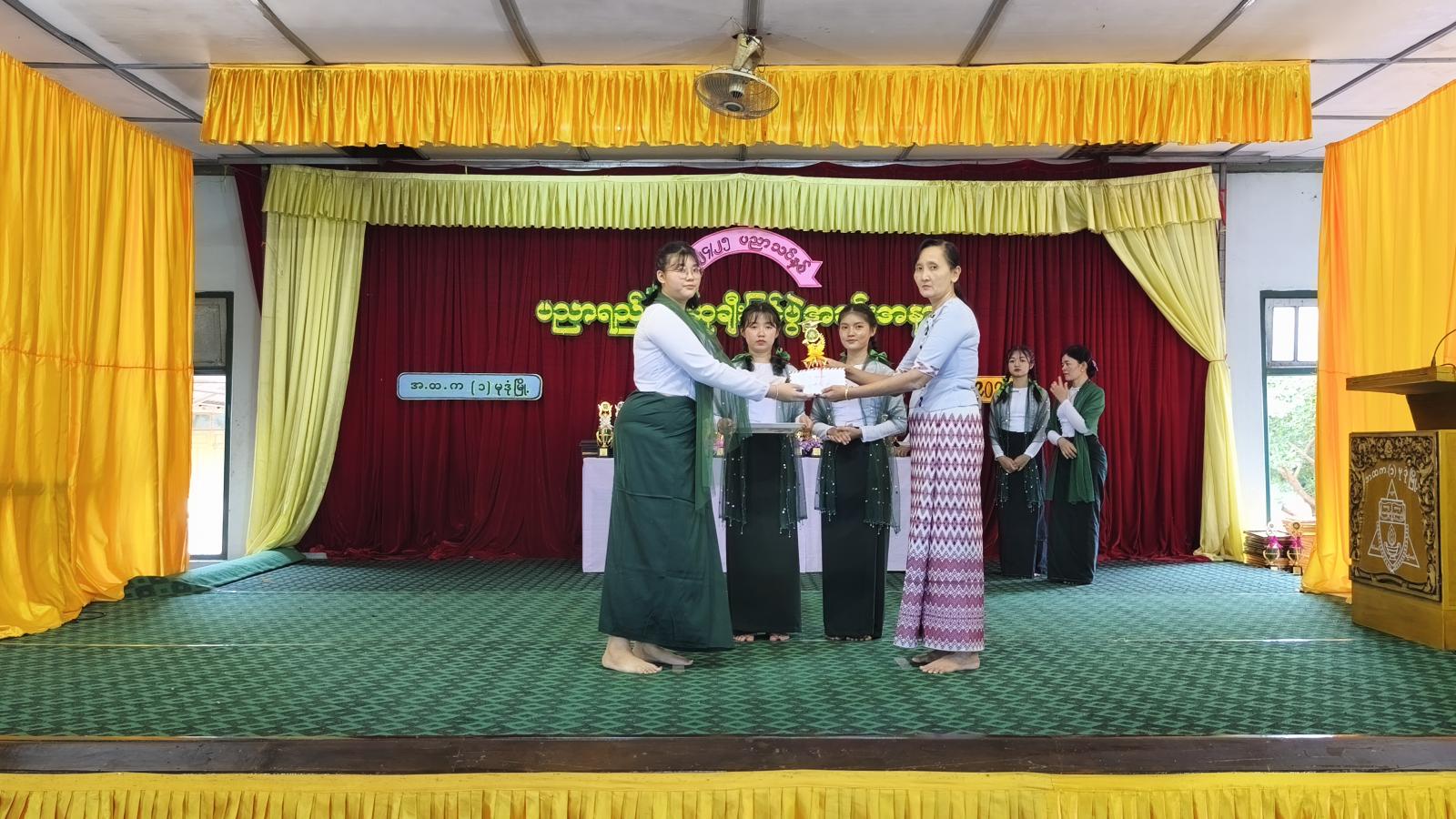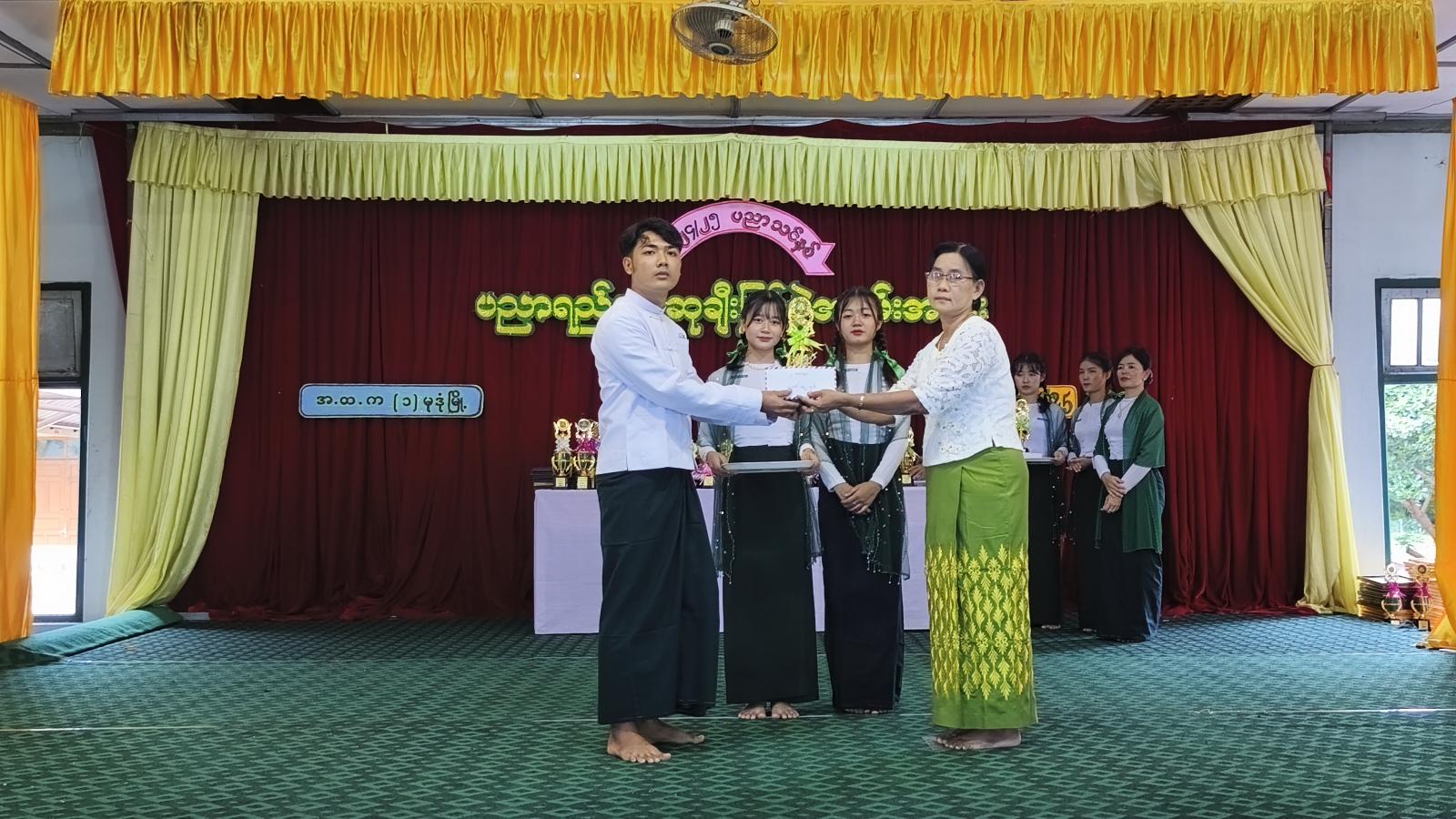 ထို့နောက် တာဝန်ရှိသူများက (၅)ဘာသာဂုဏ်ထူးရှင် (၁) ဦး၊ (၄)ဘာသာဂုဏ်ထူးရှင် (၁) ဦး၊ (၃)ဘာသာဂုဏ်ထူးရှင် (၆) ဦး၊ (၂)ဘာသာဂုဏ်ထူးရှင် (၆) ဦး၊ (၁) ဘာသာဂုဏ်ထူးရှင် (၂၁) ဦးနှင့် ကျောင်းသား/ သူများ ထူးချွန်စွာသင်ကြားပေးခဲ့သည့် ဆရာ/ဆရာမများနှင့် အလှူရှင်များအား ဂုဏ်ပြုဆုများကို အသီးသီးပေးအပ်ခဲ့ကြောင်း သိရသည်။