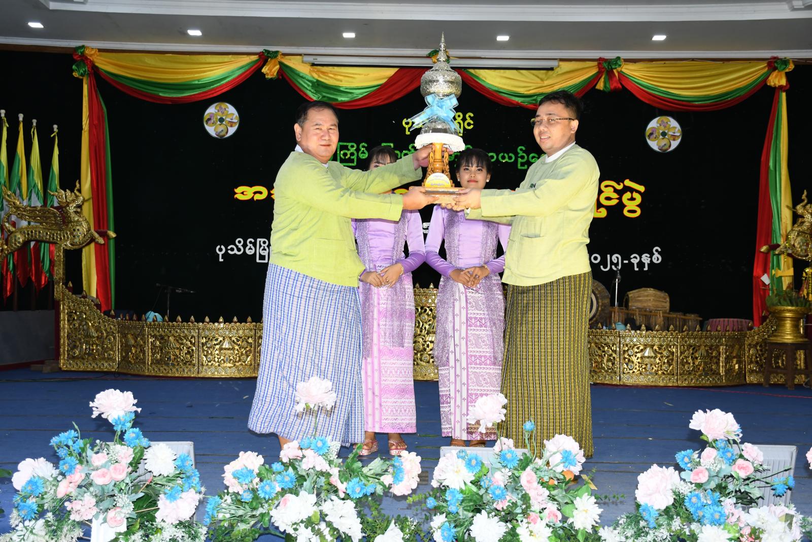 ဆက်လက်၍ ညနေပိုင်းတွင် ဆုချီးမြှင့်ပွဲအခမ်းအနားကို ပြုလုပ်ရာ ပုသိမ်ခရိုင်စီမံခန့်ခွဲရေးနှင့် အုပ်ချုပ်ရေးကော်မတီ ဥက္ကဋ္ဌနှင့် ဧည့်သည်တော်များသည် ပြိုင်ပွဲများတွင် ဆုရရှိသူများ၏ ပြန်လည်ဖျော်ဖြေမှုများကို ကြည့်ရှုအားပေးခဲ့ပြီးနောက် အခြေခံပညာ(၁၀-၁၅)၊(၁၅-၂၀)မဟာဂီတ၊ ခေတ်ဟောင်း/ ကာလပေါ်၊ ကဗျာလွတ်၊ တစ်ဦးချင်းအက၊ အရေး၊ စောင်း၊ စန္ဒယား၊ တယော၊ ပတ္တလား၊ ပုလွေ၊ အိုးစည်အဖွဲ့လိုက်၊ ဒိုးပတ်အဖွဲ့လိုက်၊ ဆိုင်းတစ်ဦးချင်းပြိုင်ပွဲများတွင် ပထမ၊ ဒုတိယနှင့် တတိယဆုရရှိသူများကို တာဝန်ရှိသူအသီးသီးကလည်းကောင်း၊ အကဲဖြတ်အမှတ်ပေးဒိုင်များ၊ စောင်း/မဟာဂီတပညာရှင်နှင့် ခရိုင်မှ တစ်ထောင့်တစ်နေရာ ပါဝင်ကူညီခဲ့ကြသူများအား ပုသိမ်ခရိုင်စီမံခန့်ခွဲရေးနှင့်အုပ်ချုပ်ရေးကော်မတီဥက္ကဋ္ဌက ဂုဏ်ပြုမှတ်တမ်းလွှာနှင့် ဂုဏ်ပြုချီးမြှင့်ငွေများ ပေးအပ်ခဲ့ပြီး ကဗျာလွတ်အကပြိုင်ပွဲတွင် ပထမဆုနှင့် မြို့နယ်အလိုက် တံခွန်စိုက်ဆုရရှိသည့် ပုသိမ်မြို့နယ်အား ဆုဖလား၊ ဂုဏ်ပြုမှတ်တမ်းလွှာနှင့် ဂုဏ်ပြုချီးမြှင့်ငွေများ ဆက်လက်ပေးအပ်ချီးမြှင့်ခဲ့ကြောင်း သိရသည်။