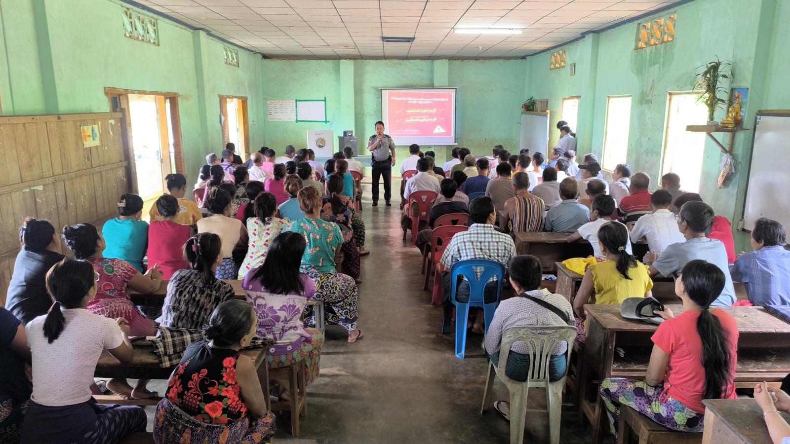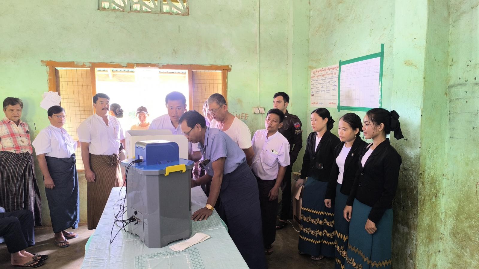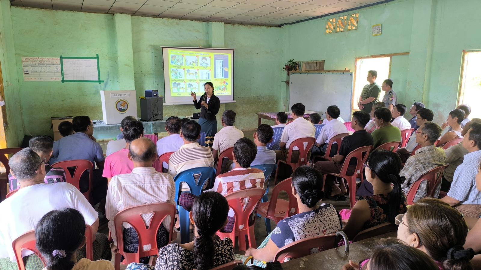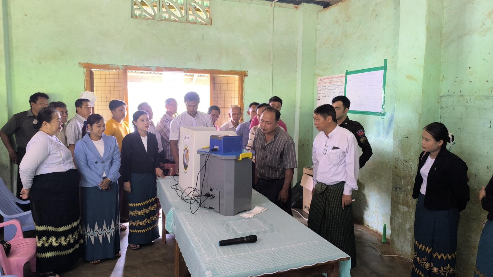 ဦးစွာ မြို့နယ်ရဲတပ်ဖွဲ့မှူး ရဲမှူး စိုးသန့်က ရွေးကောက်ပွဲပျက်အောင် ပြုလုပ်ဆောင်ရွက်မှုများနှင့် မဲဆန္ဒရှင်များအပေါ် ထိခိုက်နာကျင်စေမှု၊ ခြိမ်းခြောက်မှုများ၏ ပြစ်မှုပြစ်ဒဏ်များ အကြောင်း ရှင်းလင်းပြောကြားခဲ့ပြီး မြို့နယ်ရွေးကောက်ပွဲကော်မရှင် အဖွဲ့ခွဲရုံး၊ ရွေးကောက်ပွဲအရာရှိ ဒေါ်မို့မို့အေးနှင့် တာဝန်ရှိသူများက MEVM စနစ်ဖြင့် မဲပေးခြင်းဆိုင်ရာ နည်းစနစ်များ၊ မဲပေးစက်နှင့် မဲပေးပုံအဆင့်ဆင့်တို့အား လက်တွေ့ သရုပ်ပြသည်။