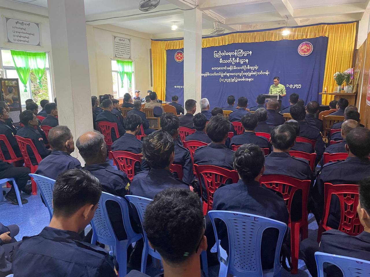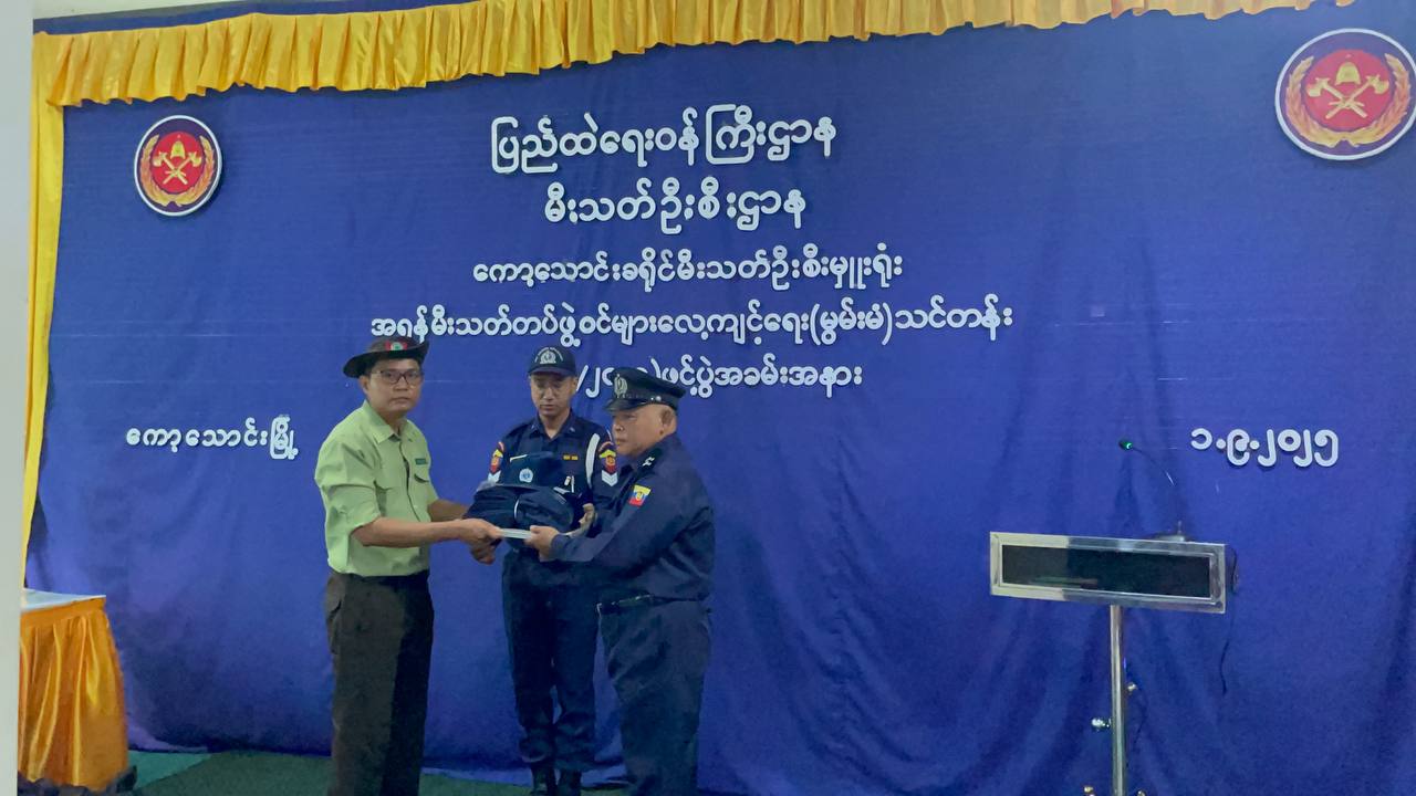 အခမ်းအနားတွင် မြို့နယ်စီမံခန့်ခွဲရေးနှင့်အုပ်ချုပ်ရေးကော်မတီဥက္ကဌ ဦးနိုင်လင်းထက်က သင်တန်းက သင်ကြားပေးလိုက်သည့် သင်ခန်းစာများကို စိတ်ဝင်တစားလေ့လာ သင်ကြားပြီး ပိုမိုကျွမ်းကျင်အောင် လေ့ကျင့်ကြပါရန်ပြောကြားခဲ့သည်။ ယင်းနောက် မြို့နယ်စီမံခန့်ခွဲရေးနှင့် အုပ်ချုပ်ရေးကော်မတီဥက္ကဋ္ဌက အရန်မီးသတ်တပ်ဖွဲ့ဝင်များအတွက် ဝတ်စုံများပေးအပ်ခဲ့သည်။ အဆိုပါ သင်တန်းကို စက်တင်ဘာ ၁ ရက်မှ ၂၆ ရက်အထိ ၄ပတ်တာ ဖွင့်လှစ်မည် ဖြစ်ကြောင်း သိရသည်။