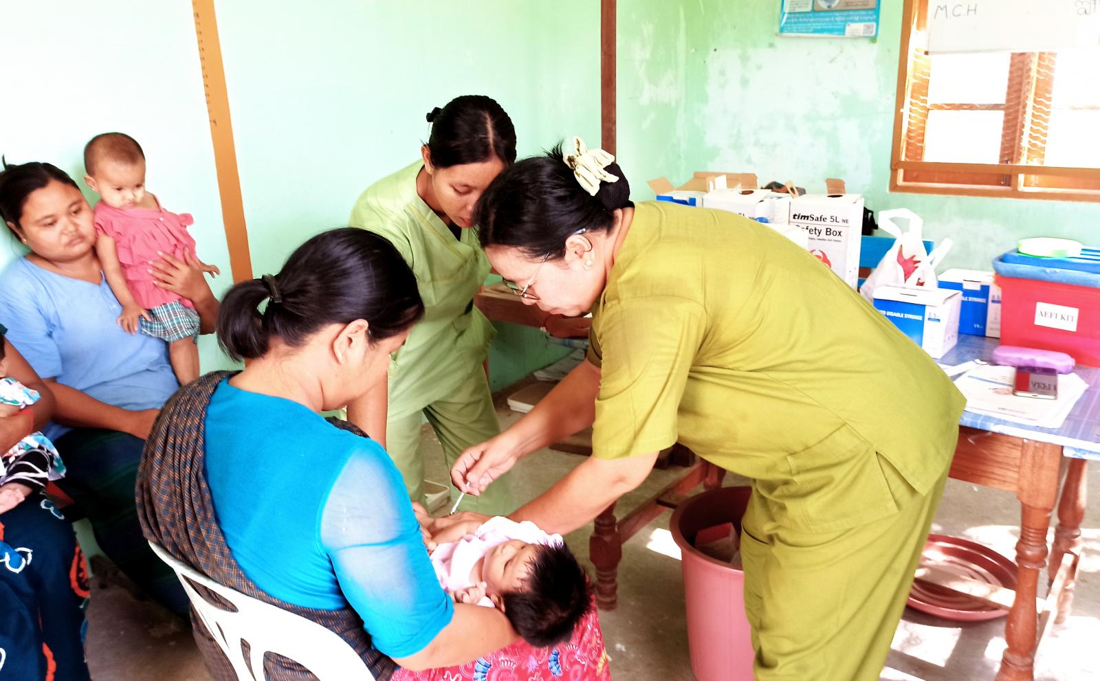 စစ်ကိုင်းတိုင်းဒေသကြီး၊ ကန့်ဘလူခရိုင်၊ ကျွန်းလှမြို့နယ်တွင် ပြည်သူများအား ကျန်းမာရေးစောင့်ရှောက်မှုပေးခြင်းလုပ်ငန်းများ ဆောင်ရွက်ပေးလျက်ရှိရာ ယနေ့နံနက် ၉ နာရီက ကလေးငယ်များနှင့် ကိုယ်ဝန်ဆောင်မိခင်များအား ပုံမှန်ကာကွယ်ဆေးများ ထိုးနှံတိုက်ကျွေးပေးလျက်ရှိကြောင်း သိရသည်။