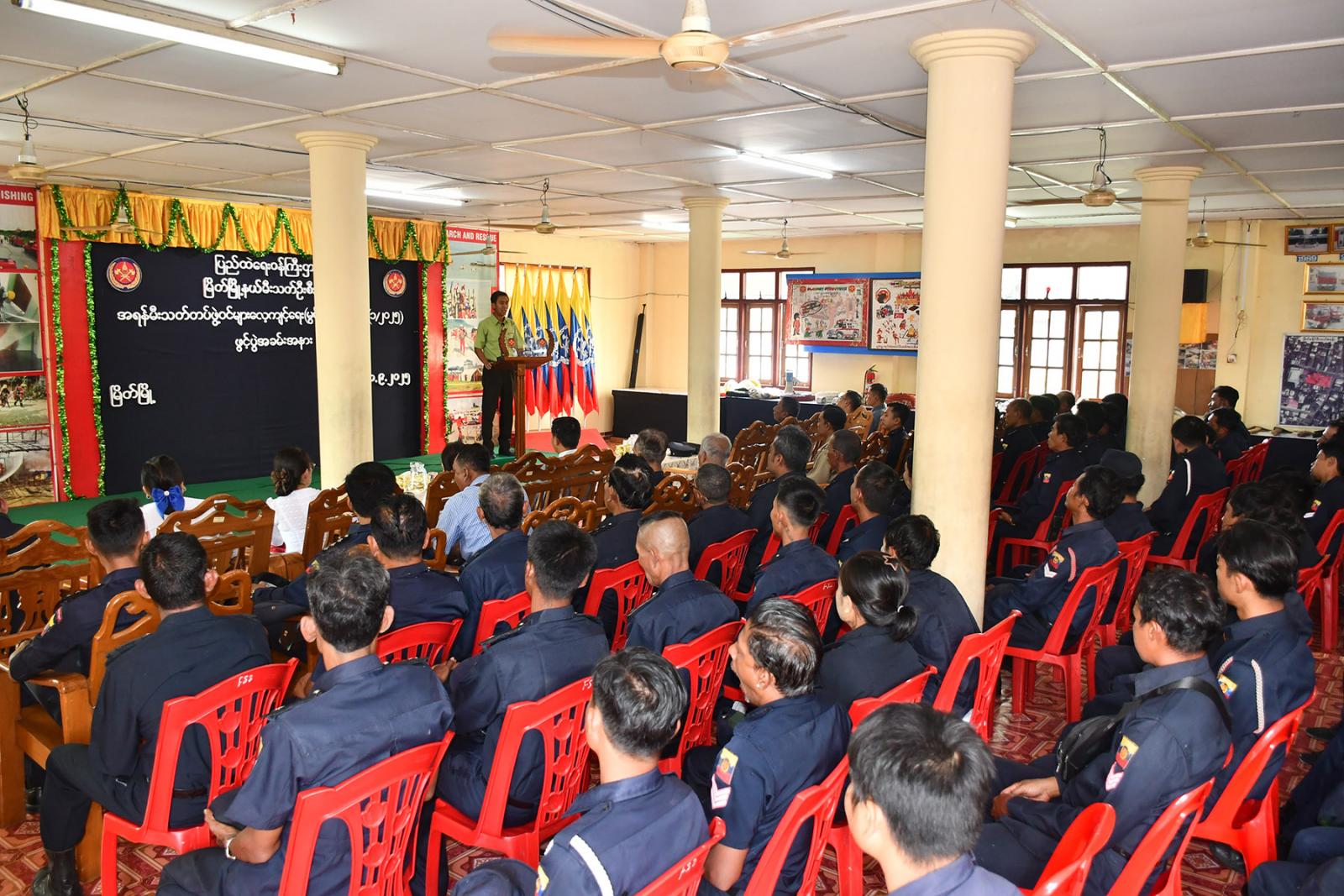 သင်တန်းဖွင့်ပွဲတွင် မြို့နယ်စီမံခန့်ခွဲရေးနှင့်အုပ်ချုပ်ရေးကော်မတီဥက္ကဋ္ဌ ဦးပြည်ဟိန်းကျော် က အမှာစကားပြောကြားပြီး ဒု-မီးသတ်ဦးစီးမှူးဦးအောင်စိုးမောင်က သင်တန်းဖွင့်လှစ်ရခြင်းနှင့်ပတ်သက်၍ ရှင်းလင်းပြောကြားသည်။ ထို့နောက် သင်တန်းတူညီဝတ်စုံများကို မြို့နယ်စီမံခန့်ခွဲရေးနှင့် အုပ်ချုပ်ရေးကော်မတီဥက္ကဋ္ဌက ပေးအပ်ရာ သင်တန်းသား တစ်ဦး က လက်ခံယူသည်။ အဆိုပါသင်တန်းကို သင်တန်းသား ၁၀၀ တက်ရောက်လျှက်ရှိပြီး ရက်သတ္တလေးပတ်ကြာ ဖွင့်လှစ်သွားမည်ဖြစ်ကြောင်း သိရသည်။