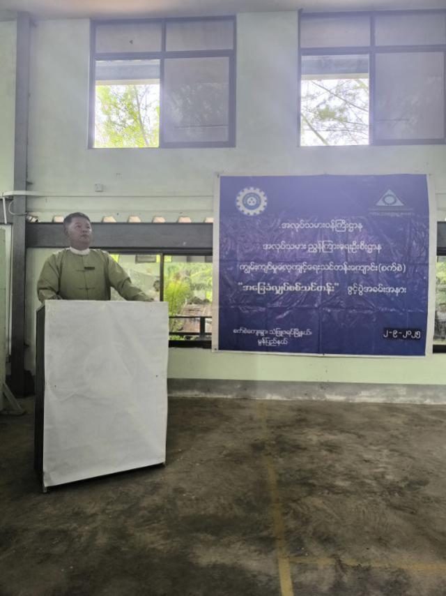 ဦးစွာ ပြည်နယ်အလုပ်သမားညွှန်ကြားရေးဦးစီးဌာန၊ ညွှန်ကြားရေးမှူးဒေါ်စုစုလိုင်က အဖွင့်အမှာစကားပြောကြားပြီး မြို့နယ်စီမံခန့်ခွဲရေးနှင့်အုပ်ချုပ်ရေးကော် မတီဥက္ကဋ္ဌ ဦးအောင်မိုးလွင်က လျှပ်စစ်ကဏ္ဍအရေးပါပုံ အကြောင်းအရာများကို ရှင်းလင်းပြောကြားသည်။