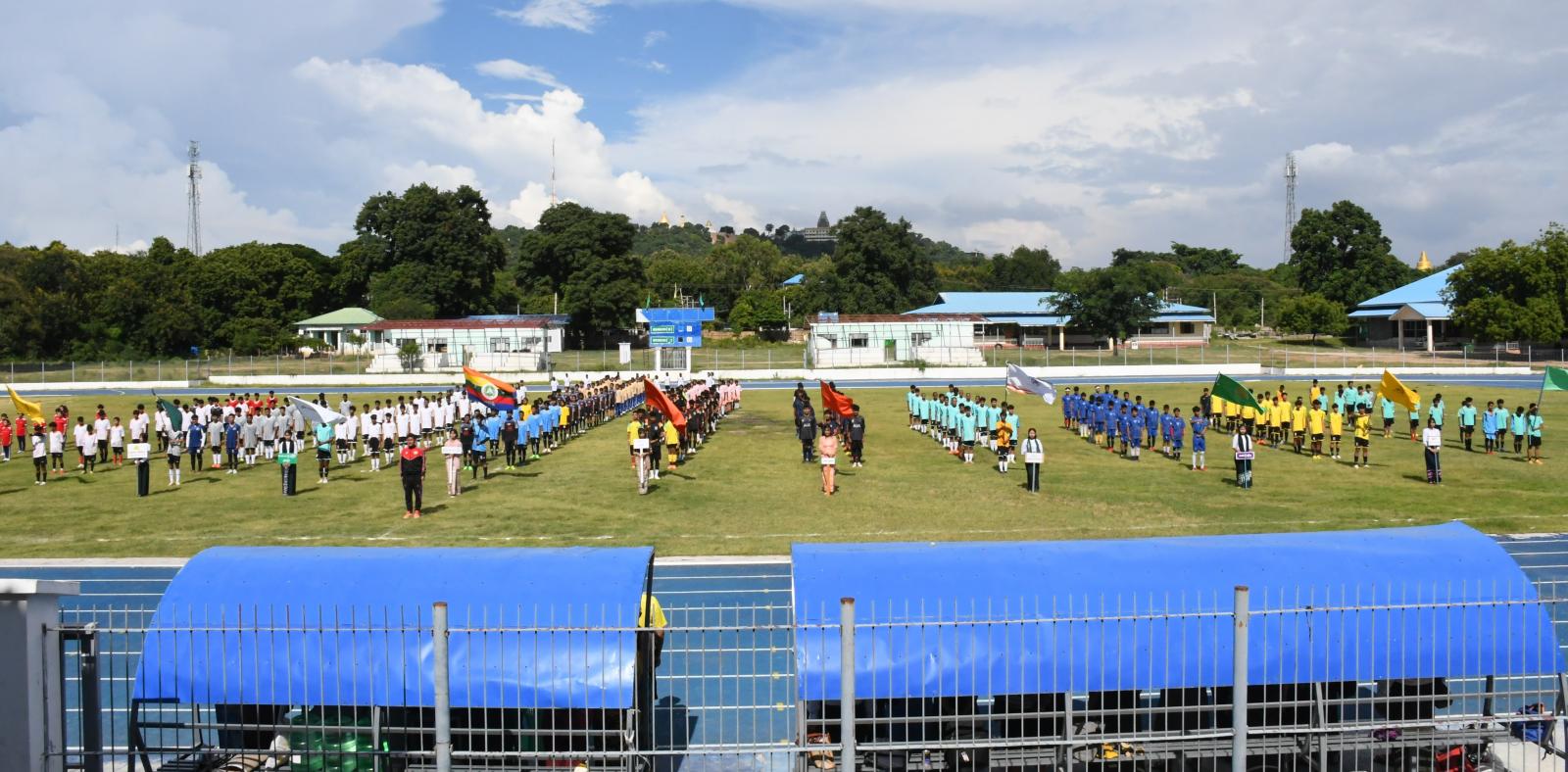 ထို့နောက် မြို့နယ်ပညာရေးမှူး ဒေါ်မို့မို့ခိုင်မှ ကျောင်းပေါင်းစုံအားကစာပြိုင်းပွဲ ကျင်းပရခြင်းနှင့်ပတ်သက်၍ ရှင်းလင်းတင်ပြကာ စစ်ကိုင်းတိုင်းဒေသကြီး ဘောလုံးအဖွဲ့ချုပ်ဥက္ကဋ္ဌ ဦးကျော်စွာထွန်းက အားကစားပစ္စည်းများပေးအပ်လှူဒါန်းခဲ့သည်။