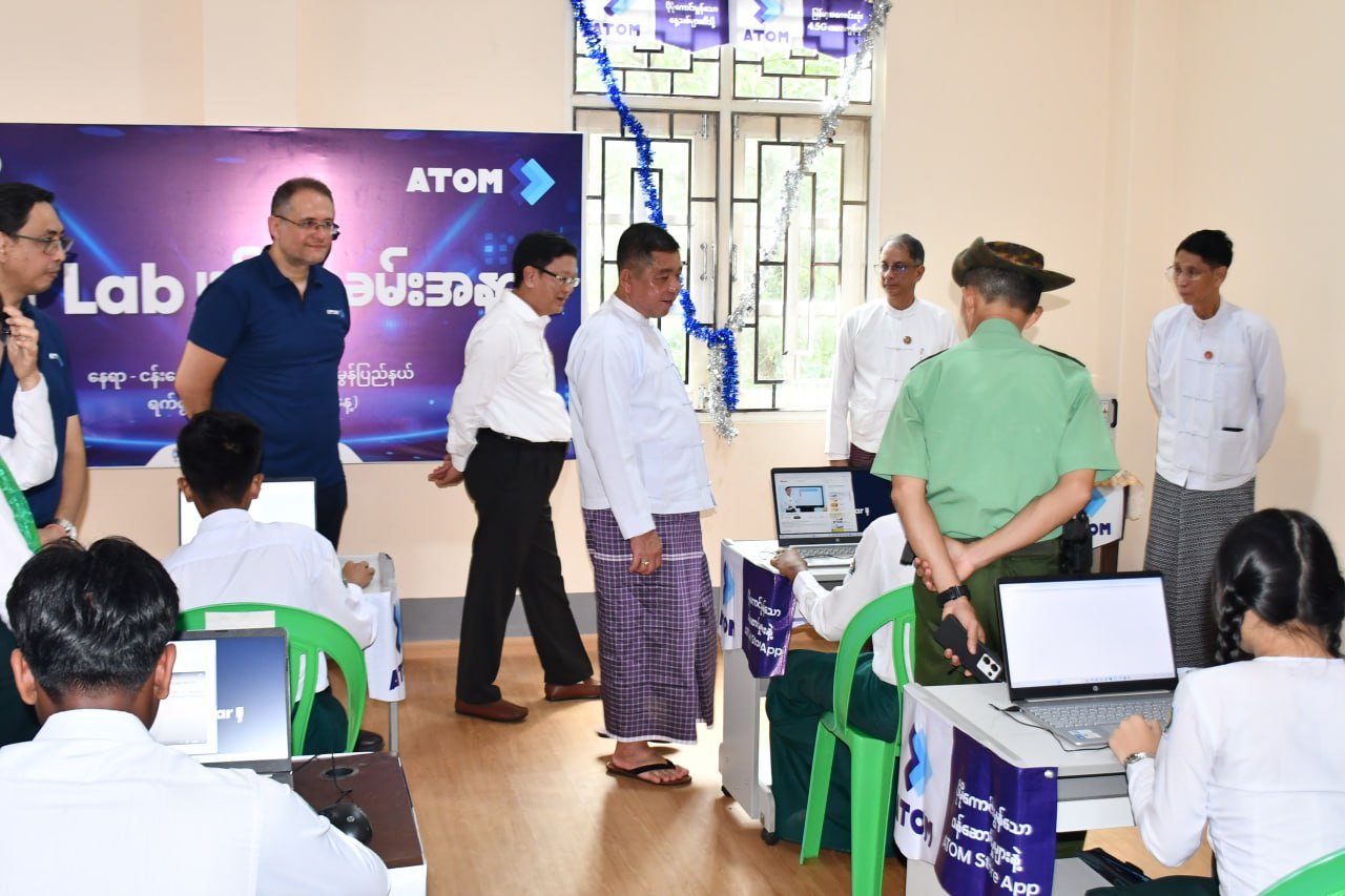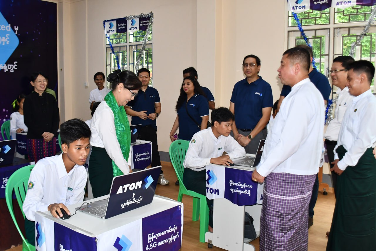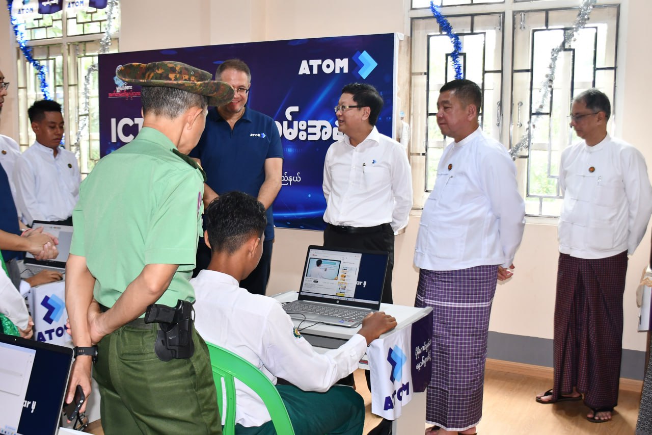 မွန်ပြည်နယ်၊ မော်လမြိုင်မြို့တွင် အက်တမ်မြန်မာလိမိတက်မှ ICT Lab လှူဒါန်းပေးအပ်ခြင်းအခမ်းအနားကို စက်တင်ဘာ ၁ ရက်နေ့ နံနက်ပိုင်းက ငန်းတေးရပ်ကွက်ရှိ အခြေခံပညာအထက်တန်းကျောင်းခွဲ(ငန်းတေး)ကျောင်း၌ ကျင်းပပြုလုပ်ရာ ဦးစွာ ပြည်နယ်ဝန်ကြီးချုပ်၊ ပြည်နယ်တရားလွှတ်တော်တရား သူကြီးချုပ်နှင့် ATOM Myanmar Limtied မှ စီမံအုပ်ချုပ်မှု အဖွဲ့ဝင်တို့က ICT Lab အခန်းအား ဖဲကြိုးဖြတ်၍ ဖွင့်လှစ်ပေးခဲ့သည်။