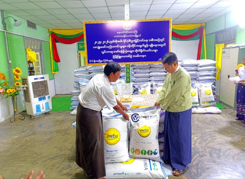 ဧရာဝတီတိုင်းဒေသကြီး၊ ဟင်္သာတခရိုင်၊ ဟင်္သာတမြို့နယ်တွင် ၂၀၂၅-၂၀၂၆ ခုနှစ် မိုးစပါး နိုင်ငံ့စီးပွားမြှင့်တင်ရေးအစီအစဥ်ဖြင့် အကျုံးမဝင်သော တောင်သူများအား ပန်းတိုင်အထွက်နှုန်းရရှိရေးအတွက် သွင်းအားစုဓာတ်မြေသြဇာများ တိုက်ရိုက်သက်သာစွာ ဖြန့်ဖြူးပေးအပ်ပွဲအခမ်းအနားကို ယမန်နေ့မွန်းလွဲ ၂ နာရီတွင် မြို့နယ်စိုက်ပျိုးရေးဦးစီးဌာနမှူးရုံးအစည်းဝေးခန်းမ၌ ပြုလုပ်ခဲ့သည်။