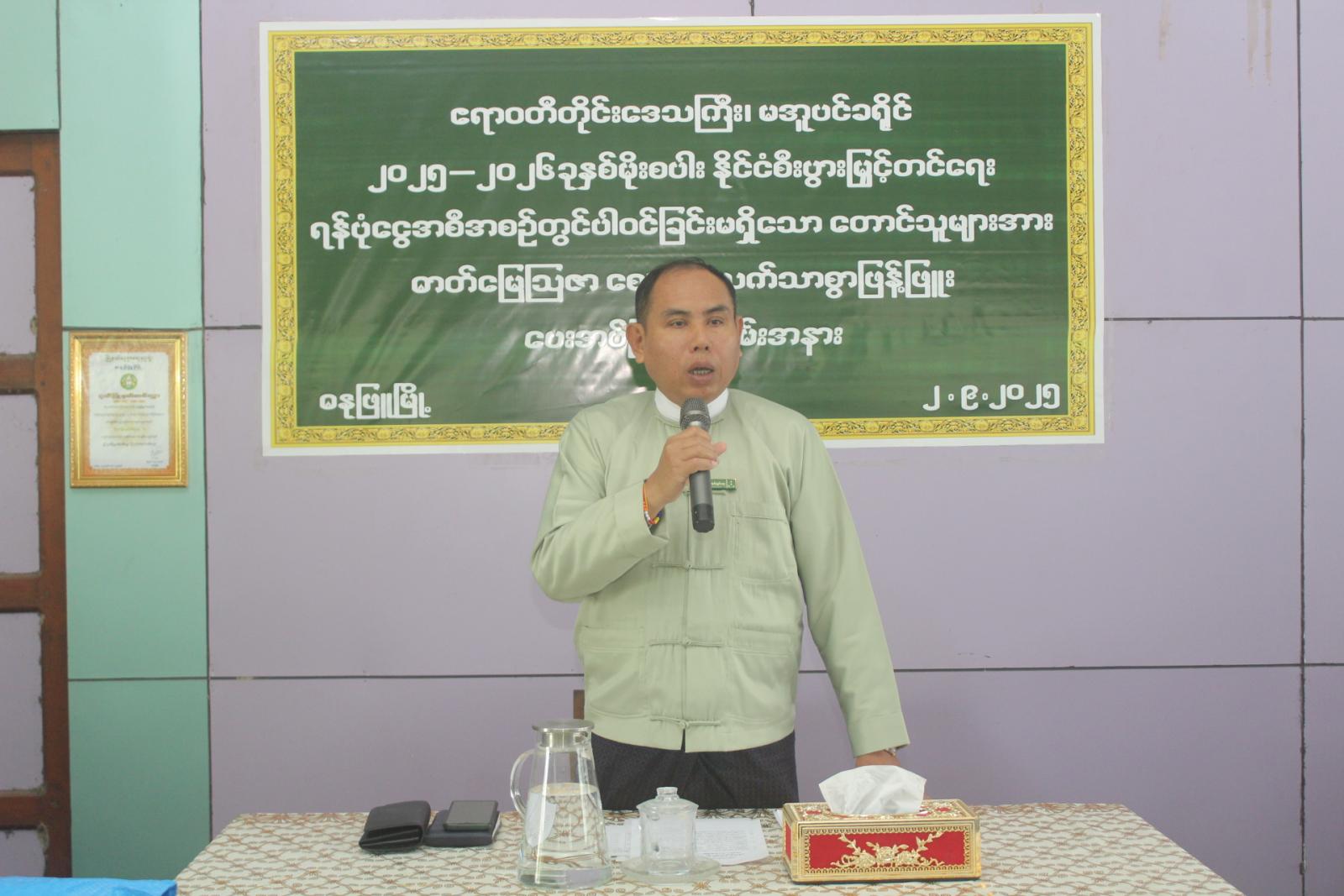 အခမ်းအနားတွင် မြို့နယ်စီမံခန့်ခွဲရေးနှင့်အုပ်ချုပ်ရေးကော်မတီဥက္ကဋ္ဌ၊ မြို့နယ်စိုက်ပျိုး ထုတ်လုပ်မှုတိုးတက်မြင့်မားရေး ကြီးကြပ်မှုကော်မတီဥက္ကဋ္ဌ ဦးကျော်မိုးလွင်က နိုင်ငံ့စီးပွား ရန်ပုံငွေနှင့်အကျုံးမဝင်သည့် မိုးစပါးစိုက်ပျိုးသည့်တောင်သူများအား ဓာတ်မြေဩဇာများကို ဈေးနှုန်းသက်သာစွာဖြင့် ဝယ်ယူသုံးစွဲနိုင်စေရန်အတွက် ပို့ဆောင်ရောင်းချပေးလျက် ရှိပါကြောင်း၊ တောင်သူများအနေဖြင့် ပြင်ပပေါက်ဈေးနှုန်းများထက် သက်သာသောဈေးနှုန်းဖြင့် ဝယ်ယူနိုင်စေရန် သီးနှံပေါ်ပေး (အကြွေး) စနစ်ဖြင့် တောင်သူများ အဆင်ပြေစေရန်ရည်ရွယ်ပြီး ဆောင်ရွက်ပေးပါကြောင်းနှင့် ဓာတ်မြေဩဇာများအသုံးပြုပြီး စပါးအထွက်နှုန်းတိုးပါက တောင်သူဦးကြီးများအဆင်ပြေမှာဖြစ်ပါကြောင်း ပြောကြားခဲ့ ပါသည်။ ဆက်လက်၍ မြို့နယ်ကျေးလက်ဒေသဖွံ့ဖြိုးရေးဦးစီးဌာန၊ လက်ထောက်ညွှန်ကြားရေးမှူး ဒေါ်ခိုင်ချိုလွင်က လုပ်ငန်းအစီအစဉ်နှင့် စာချုပ်စည်းကမ်းများအား ရှင်းလင်းဆွေးနွေးပြေားကြားပြီး၊ မြို့နယ်စိုက်ပျိုးရေးဦးစီးဌာန၊ ဦးစီးအရာရှိ ဦးချစ်ဝင်းနိုင်မှ ဓာတ်မြေဩဇာ ဖြန့်ဖြူးခြင်းအစီအစဉ်အား ရှင်းလင်းဆွေးနွေးပြောကြားခဲ့သည်။