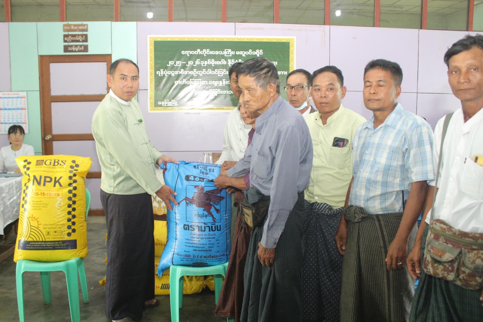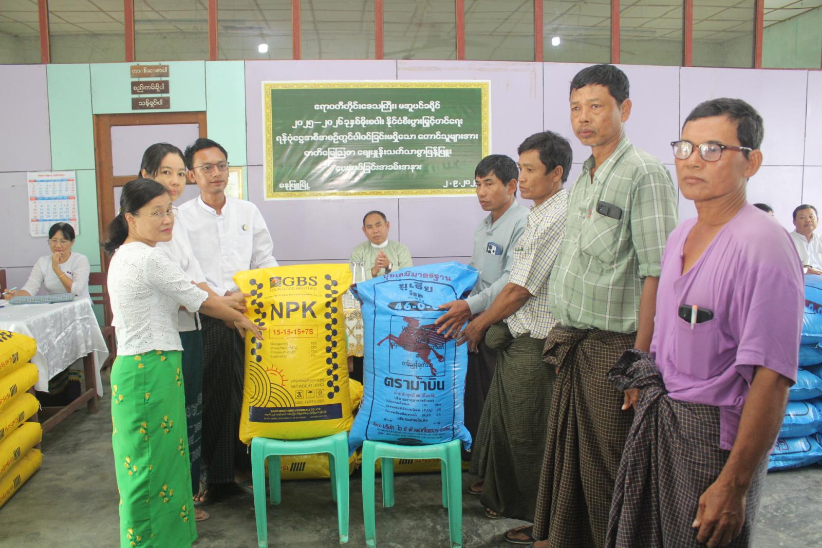 ထို့နောက် မြို့နယ်ဓာတ်မြေဩဇာသယ်ယူဖြန့်ဖြူးရေးလုပ်ငန်းကော်မတီမှ တာဝန်ရှိသူများက နိုင်ငံ့စီးပွားမြှင့်တင်ရေးရန်ပုံငွေဖြင့် ဆောင်ရွက်ခြင်း မရှိသော ကျေးရွာအုပ်စု(၆၃) အုပ်စုရှိ မိုးစပါးစိုက်ပျိုးတောင်သူများထံသို့ မြင်းပျံ ယူရီးယားဓာတ်မြေဩဇာ (၁၁၇၅၀) အိတ်နှင့် စွဲမက်ကွန်ပေါင်း (၁၃၇) အိတ်၊ အာမိုကွန်ပေါင်း (၂၅၀ဝ)အိတ်၊ GBS ကွန်ပေါင်း (၁၃၆) အိတ်၊ ရွှေမြေကွန်ပေါင်း (၂၂၂၇) အိတ်အား ဈေးနှုန်းသက်သာစွာဖြန့်ဖြူးပေးအပ်ခဲ့ကြောင်း သိရသည်။