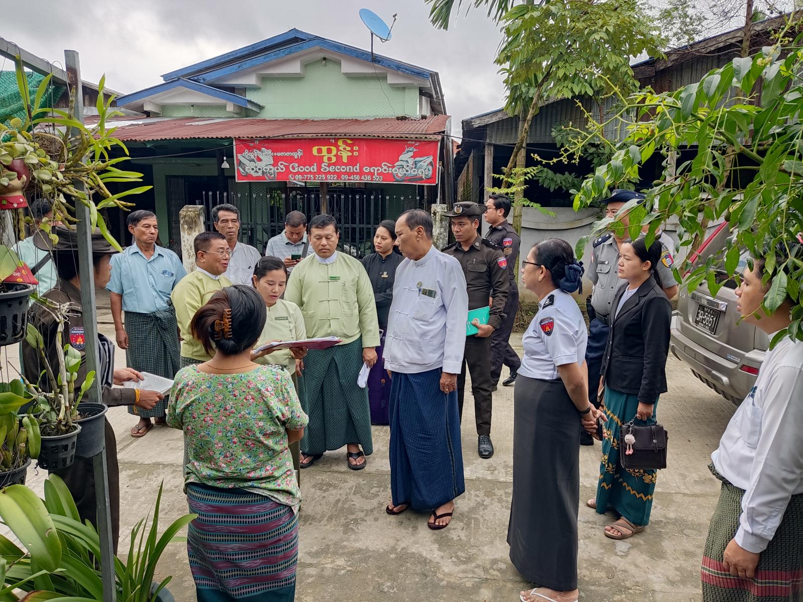 ထို့နောက် ရပ်ကွက်ကျေးရွာ မြေပြင်လူဦးရေကောက်ယူရေး အဖွဲ့များမှ ရပ်ကွက်အတွင်း တစ်အိမ်ဆင်း တစ်အိမ်တက် လူဦးရေစာရင်းများ တိုက်ဆိုင်နေမှုအခြေအနေနှင့် နိုင်ငံသား စိစစ်ရေးကတ်ပြားများ ကွင်းဆင်းဆောင်ရွက်ပေးနေမှု အခြေအနေများအား ရပ်ကွက်များအတွင်းသို့ လှည့်လည်ကွင်းဆင်းစစ်ဆေးကြည့်ရှု့ခဲ့ပြီး ရပ်ကွက်ကျေးရွာမြေပြင်လူဦးရေကောက်ယူရေးအဖွဲ့များအား မိမိတို့၏ ရပ်ကွက်/ကျေးရွာအုပ်စုအတွင်း၌ (၂၈-၁၂-၂၀၂၅) ရက်နေ့တွင် အသက်(၁၈) နှစ်ပြည့်ပြီးသူများ လူကျန်မှုမရှိစေရေးနှင့် သေဆုံးသူများမဲစာရင်းတွင် မပါရှိစေရေးနှင့် မဲစာရင်းများ မှန်ကန်စေရေးအတွက် တစ်အိမ်ဆင်း တစ်အိမ်တက် စနစ်တကျဖြင့် စစ်ဆေးဆောင်ရွက်သွားရန်နှင့် သက်ဆိုင်ဌာနများမှ ပေါင်းစပ်ဆောင်သွားရန်လမ်းညွှန်မှာကြားခဲ့ကြောင်း သိရသည်။