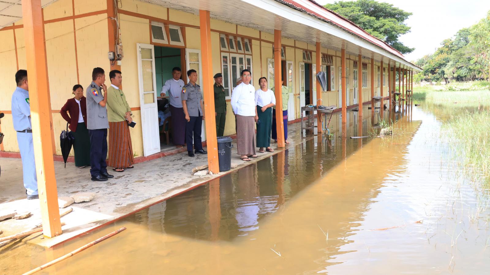 ထို့နောက် ပြည်နယ်ဝန်ကြီးချုပ်နှင့် တာဝန်ရှိသူများသည် မြို့လယ်ကန္ဒရဝတီတံတားနှင့် ဘီလူးချောင်းတံတား (ရှမ်းပိုင်း)၊ မင်းစုရပ်ကွက် မင်းကျောင်းကန်များနှင့် အနိမ့်ပိုင်းရပ်ကွက်အချို့တွင် ရေဝင်ရောက်နေမှု အခြေအနေများအား လှည့်လည်ကြည့်ရှုစစ်ဆေးပြီး ရေပြန်လည်ကျဆင်းနိုင်ရေးဆောင်ရွက်ရန်များကို တာဝန်ရှိသူများအား မှာကြားခဲ့ကာ ဘီလူးချောင်းရေမြင့်တက်၍ ရေတိုက်စားမှုမှ ကာကွယ်နိုင်ရန်အတွက် မြေထိန်းနံရံတည်ဆောက်ခြင်း လုပ်ငန်းဆောင်ရွက်နေမှုအား ကြည့်ရှုစစ်ဆေးခဲ့ကြောင်း သိရသည်။