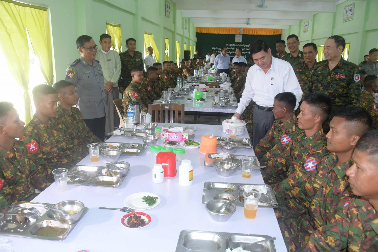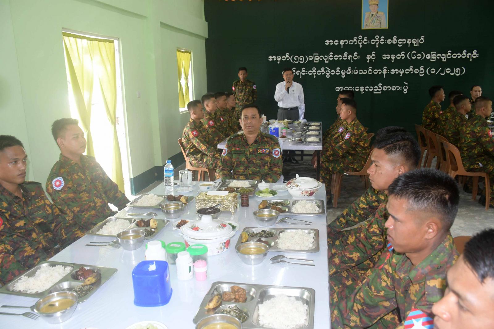 ထို့နောက် ပြည်နယ်ဝန်ကြီးချုပ်နှင့်အဖွဲ့သည် စစ်တွေတပ်နယ်၌ လုံခြုံရေးတပ်ဖွဲ့ဝင်များအား ရခိုင်ပြည်နယ်အစိုးရအဖွဲ့က တည်ခင်းဧည့်ခံကျွေးမွေးသည့် အထူးနေ့လယ်စာစားပွဲသို့ တက်ရောက်ကြသည်။ နေ့လယ်စာစားပွဲတွင် ပြည်နယ်ဝန်ကြီးချုပ်က နှုတ်ခွန်းဆက် အမှာစကားပြောကြားပြီး တိုင်းမှူးက လုံခြုံရေးဆိုင်ရာကိစ္စများနှင့်ပတ်သက်၍ ရှင်းလင်းပြောကြားကာ ပြည်နယ်ဝန်ကြီးချုပ်နှင့် အဖွဲ့ဝင်များသည် တပ်ဖွဲ့ဝင်များနှင့်အတူ အထူးနေ့လယ်စာကို အတူတကွသုံးဆောင်ကြသည်။
