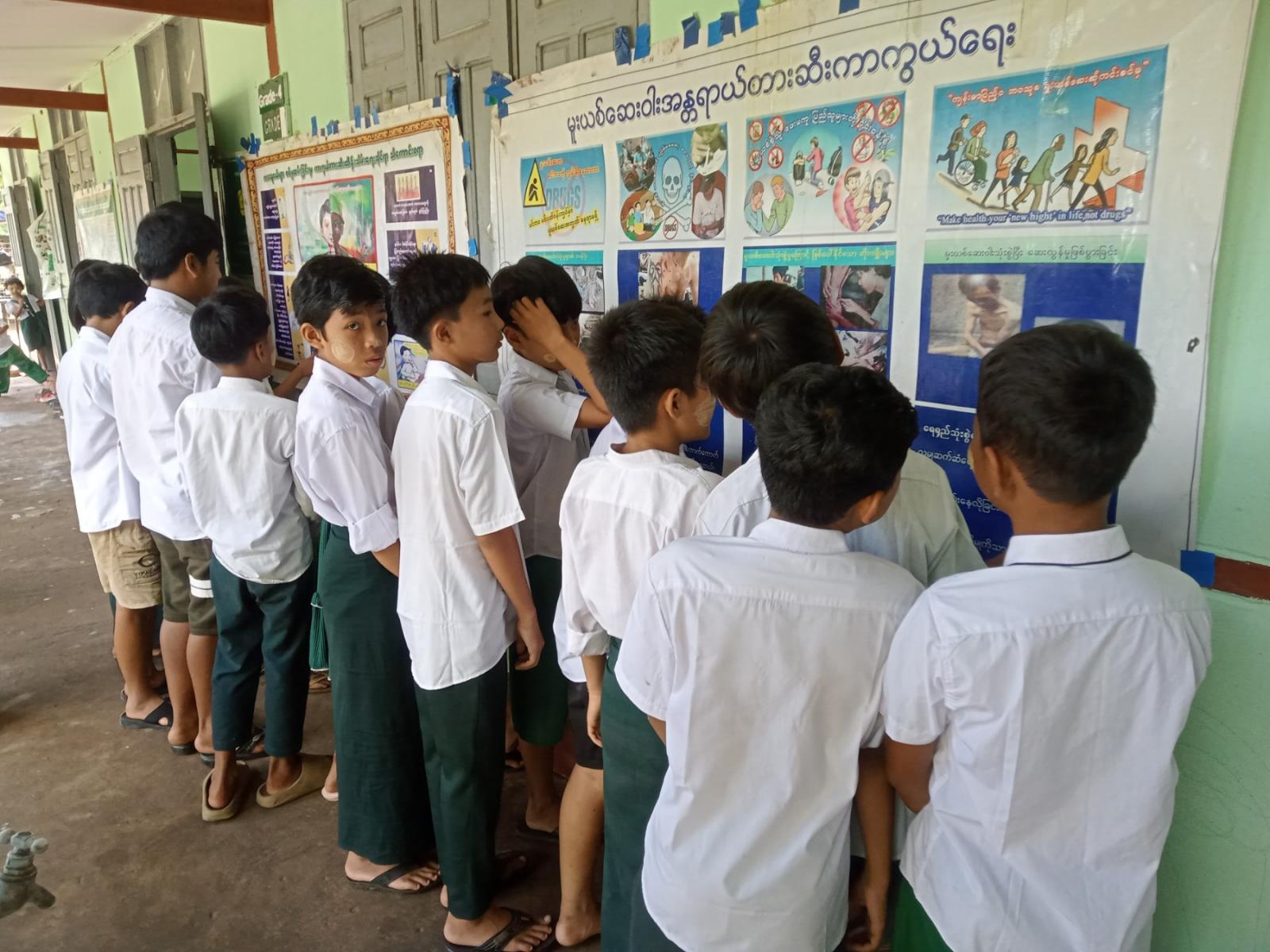 အဆိုပါအသိပညာပေးလုပ်ငန်းတွင် မူးယစ်ဆေးဝါးအန္တရာယ်သတိပြုကာကွယ်ရေး၊ လူကုန်ကူးမှုတိုက်ဖျက်ရေး၊ ကလေးအလုပ်သမားပပျောက်ရေး စသည့်အသိပညာပေးနံရံကပ်စာစောင်များကို ခင်းကျင်းိပြသခဲ့ရာ ကျောင်းသား၊ ကျောင်းသူများက စိတ်ပါ၀င်စားစွာ ကြည့်ရှုလေ့လာခဲ့ကြောင်း သိရသည်။