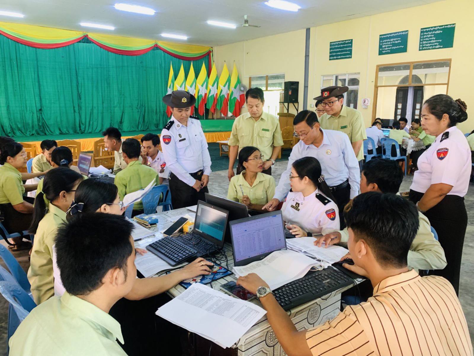 ဧရာဝတီတိုင်းဒေသကြီးအစိုးရအဖွဲ့ လမ်းပန်းဆက်သွယ်ရေးဝန်ကြီး ဦးအောင်စန်းချစ်သည် ဟင်္သာတ ခရိုင်အတွင်းရှိ ဟင်္သာတ၊ ဇလွန်၊ လေးမျက်နှာမြို့နယ်များတွင် မြေပြင်လူဦးရေစာရင်း တိုက်ဆိုင်စစ် ဆေးခြင်းလုပ်ငန်းများ ကွင်းဆင်းကြည့်ရှုစစ်ဆေးရာတွင် တာဝန်ရှိသူများအား “မဲဆန္ဒရှင်စာရင်းများ ပြုစုရာတွင် အခြေခံရမည့် လူဦးရေစာရင်းများ ပြည့်စုံမှန်ကန်စေရေး၊ အသက် ၁၈ နှစ်ပြည့်ပြီးသူတိုင်း ဆန္ဒမဲပေးပိုင်ခွင့် မဆုံးရှုံးစေရေးအလေးထား ဆောင်ရွက်သွားရန်” လမ်းညွှန်မှာကြားခဲ့ကြောင်းသိရ ပါသည်။