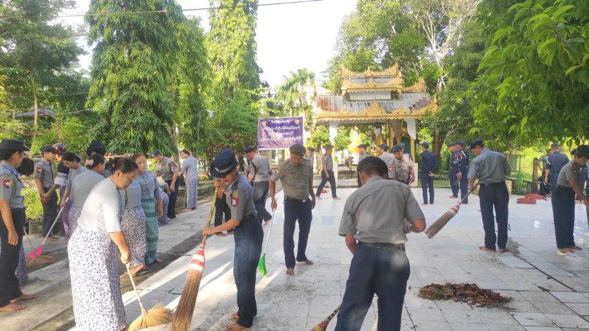 ယင်းသို့ ဆောင်ရွက်ရာတွင် ဝါးခယ်မမြို့နယ် မြို့နယ်ရဲတပ်ဖွဲ့မှူး ရဲမှူးဝင်းညွန့် ဦးဆောင်ကာ ရဲတပ်ဖွဲ့ဝင်များ၊ မြို့နယ်စီမံခန့်ခွဲရေးနှင့်အုပ်ချုပ်ရေးကော်မတီဝင်များ၊ မီးသတ်တပ်ဖွဲ့နှင့်ရဲတပ်ဖွဲ့မိသားစုဝင်များ၊ သတင်းရဲတပ်ဖွဲ့ စုစုပေါင်း ၉၁ ဦးတို့မှ စေတီတော်ဝင်းအတွင်းရှိ ခြုံနွယ်ပိတ်ပေါင်းများရှင်းလင်းခြင်း၊ စေတီတော်မြတ်ကြီးအား ရေသပ္ပါယ်ခြင်း၊ ရင်ပြင်တော်အားသန့်ရှင်းရေးဆောင်ရွက်ခြင်း၊ ရေမြောင်းများတူးဖော်ရှင်းလင်းခြင်းတို့ကို စုပေါင်းဆောင်ရွက်ခဲ့ကြကြောင်း သိရသည်။