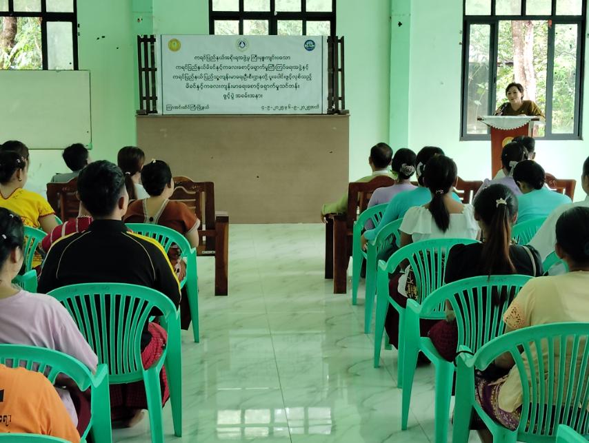 ကရင်ပြည်နယ်အစိုးရအဖွဲ့မှ ကြီးမှူးကျင်းပသည့် ကရင်ပြည်နယ် မိခင်နှင့်လေးစောင့်ရှောက်မှုကြီးကြပ်ရေးအဖွဲ့နှင့် ပြည်နယ်ကျန်းမာရေးဦးစီးဌာနတို့ ပူးပေါင်းဖွင့်လှစ်သော မိခင်နှင့်ကလေးကျန်းမာရေးစောင့်ရှောက်မှုသင်တန်း ဖွင့်ပွဲအခမ်းအနားကို ယမန်နေ့နံနက်ပိုင်းအချိန်က မြို့နယ်ပြည်သူ့ကျန်းမာရေးဦးစီးဌာန အစည်းအဝေးခန်းမ၌ ပြုလုပ်ကျင်းပသည်။